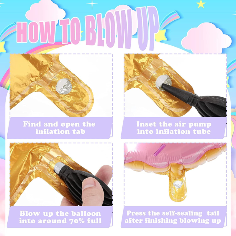 Easily and quickly filled with air and helium After being blown up, these donut birthday party balloons have a beautiful luster and not easy to fade, which can serve you for a long time.