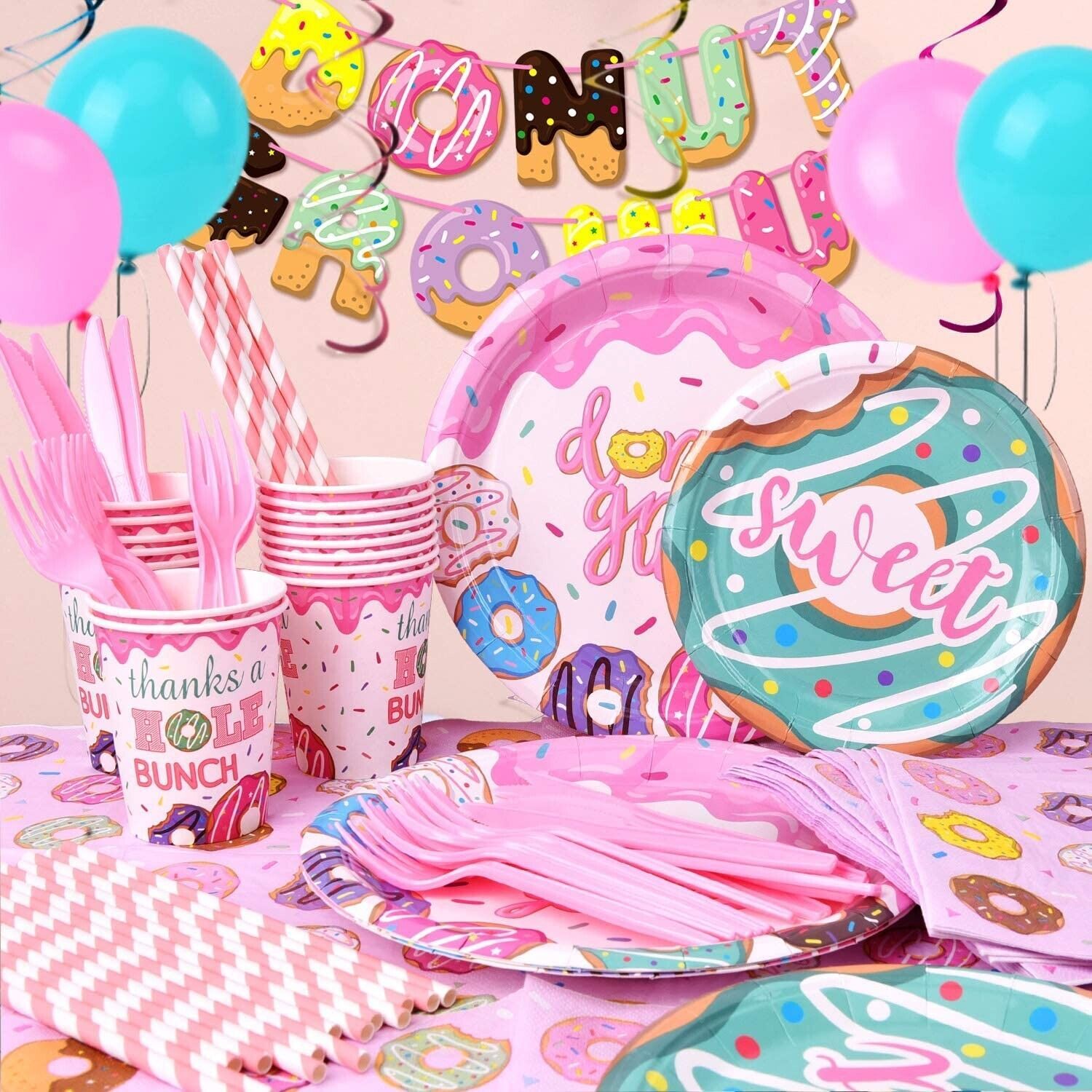 ?GIFT !PERFECT FOR ALL OCCASIONS ! - Girls of all ages love DONUT ! For you daughter, granddaughter or niece , It is perfect for Girls Birthday, one birthday party decoration, Christmas, Baby shower, sleep over parties, party supplies,photo booth props, outdoor events..etc. READY TO GO PARTY PACK, GREAT GIFT !