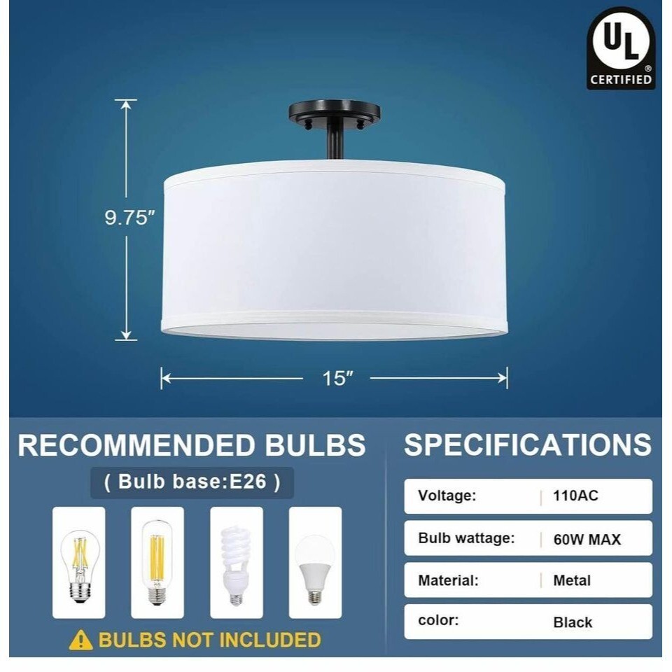 - Doraimi Lighting 15" Fabric Drum Shade semi Flush Mount Ceiling Light
