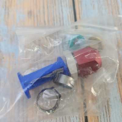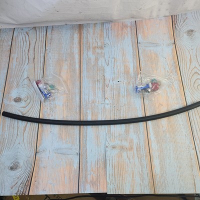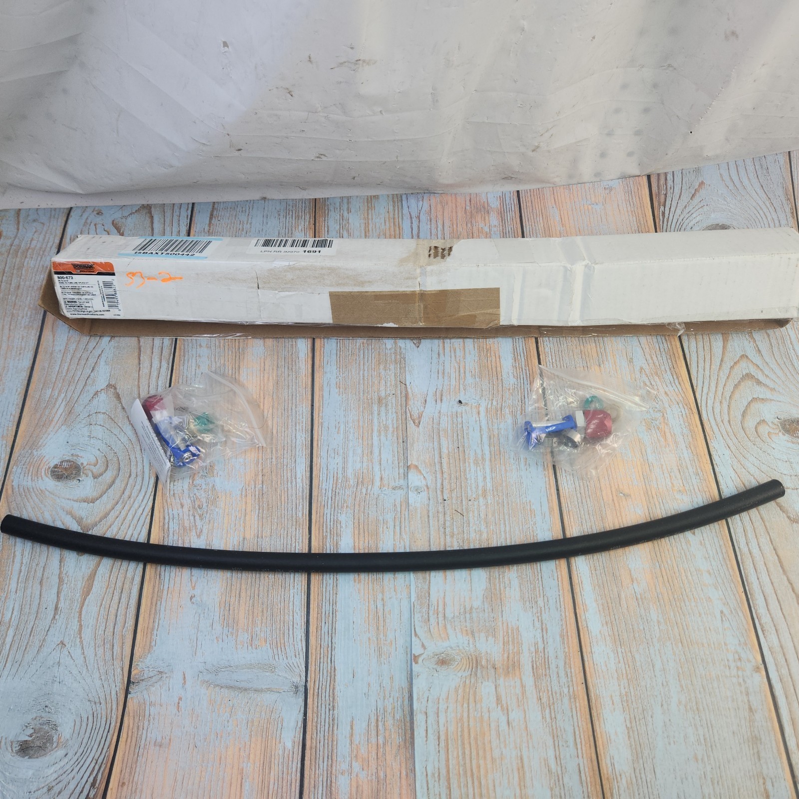 Exact item kit is shown. New open box with original packaging. SAE, 1 Hose; 2 Barbed Compression Fittings; 4 Retaining Clips; 2 Brass Compression Fittings; 2 Rubber Gaskets; 2 Clips. Made in USA. No returns on installed items or partial kits. Please review our business policies in our store for information regarding returns, shipping and warranties.
