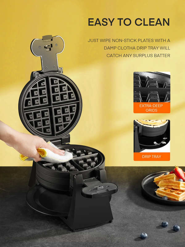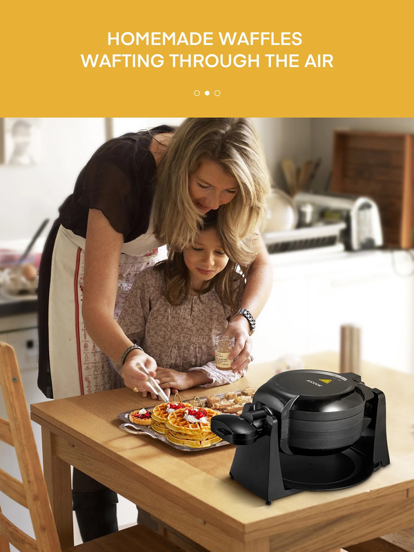 - Double Belgian Waffle Maker 180 Flip, 1400W, Waffles in 3 Minutes, Anti-Scald, N