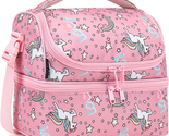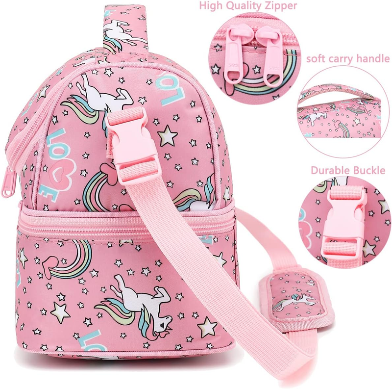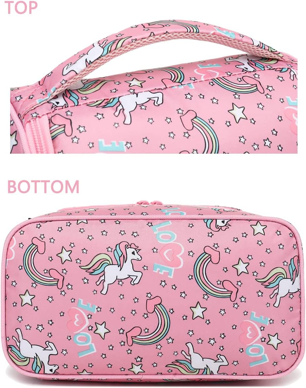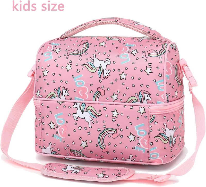 Double Decker Cooler Insulated Lunch Bag Large Tote for Boys, Girls, Men, Women, with Adjustable Strap (Red-Unicorn)