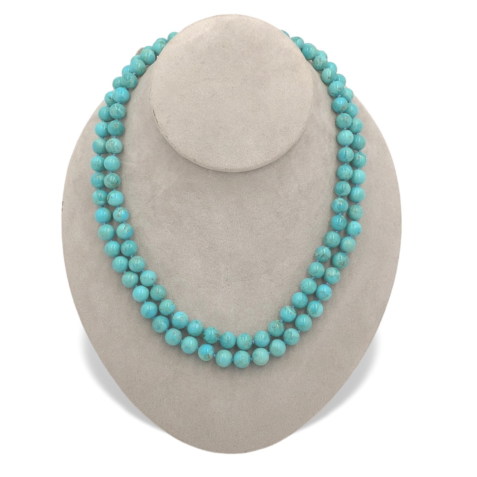 - Double Strand Kingman Genuine Turquoise 8mm Strand of Beads Necklace 19" #J7328