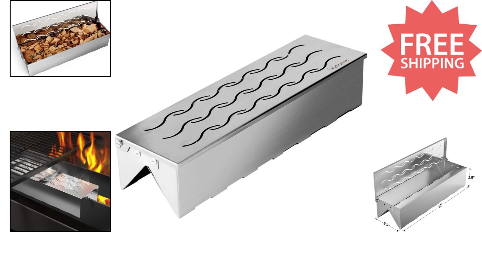 - Double V-Shape BBQ Smoker Box with Hinged Lid - Perfect for Flavor Rich Grilling