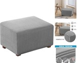 - Dove Gray Elastic Ottoman Slipcover - Spandex Jacquard for Stylish Living Rooms