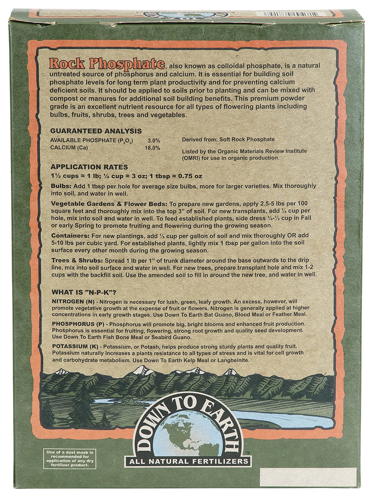 - Down To Earth All Natural Fertilizers Organic Rock Phosphate Mix 0-3-0, 5 lb