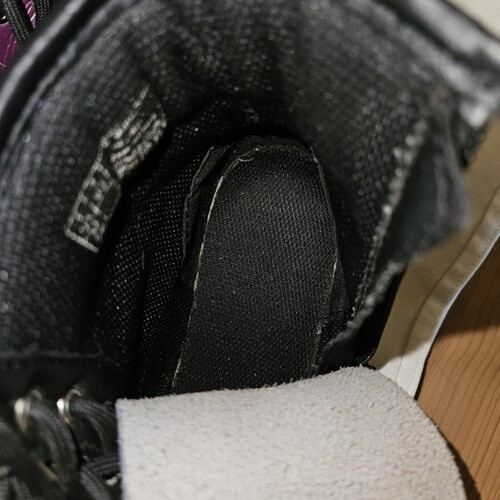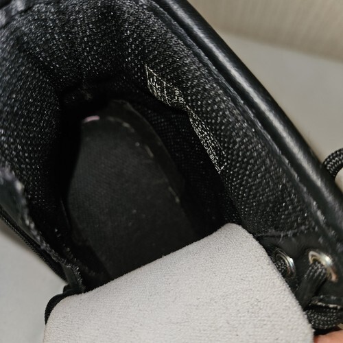 Left toe has scuffs, both have creasing and cosmetic wear. Mild sole wear