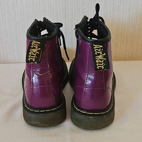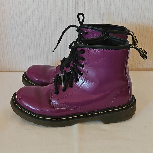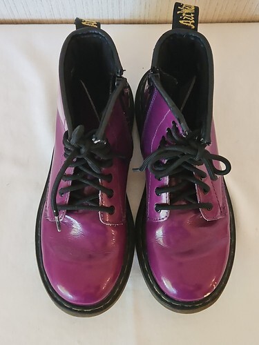 - Dr Martens Boots Girls 2 Purple Faux Leather AirWair Combat Patent ZipnAnkle