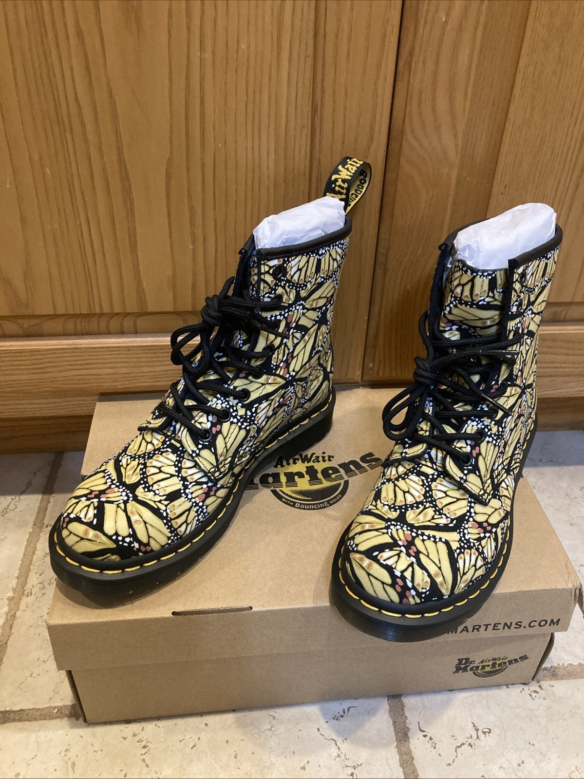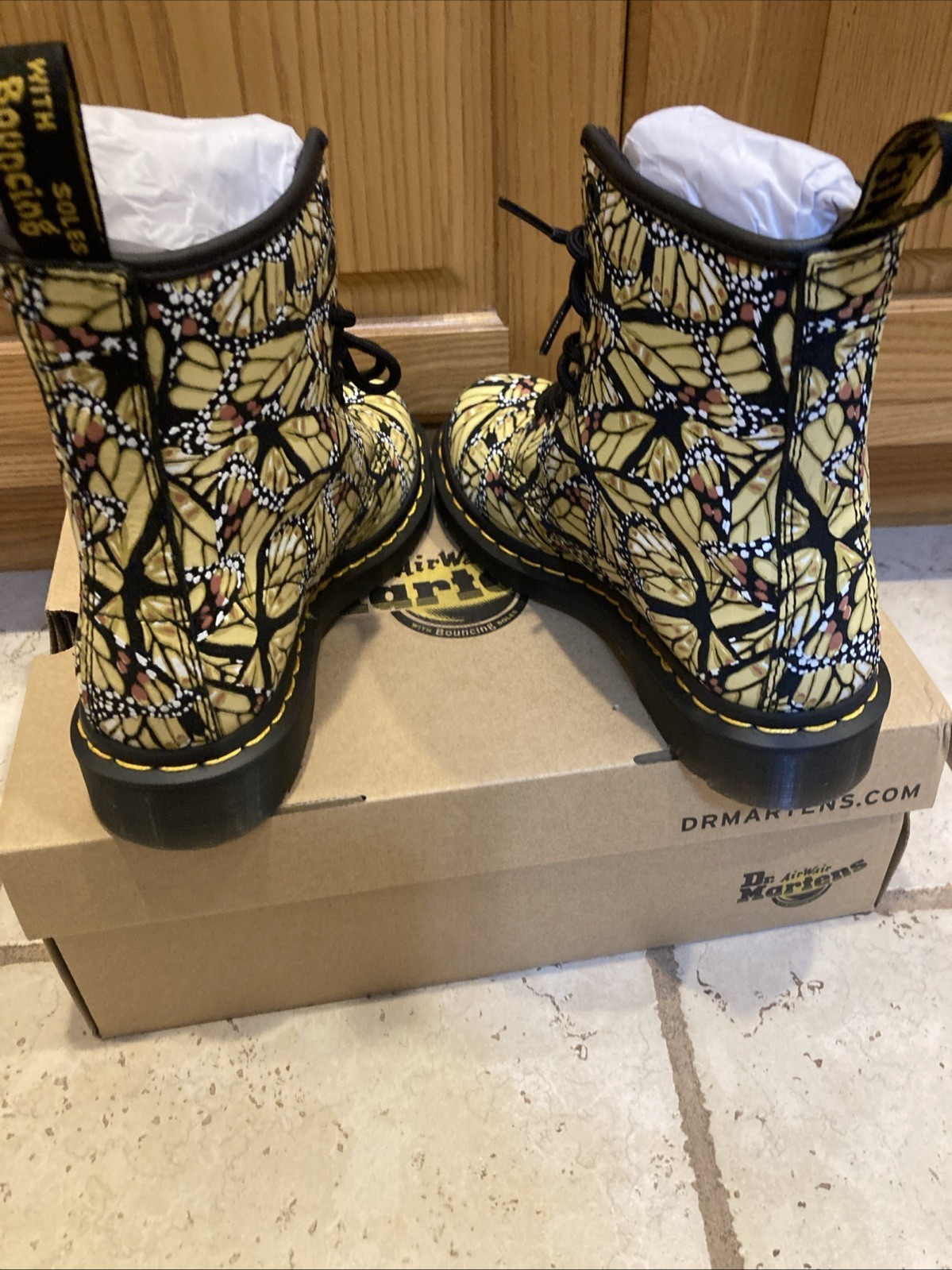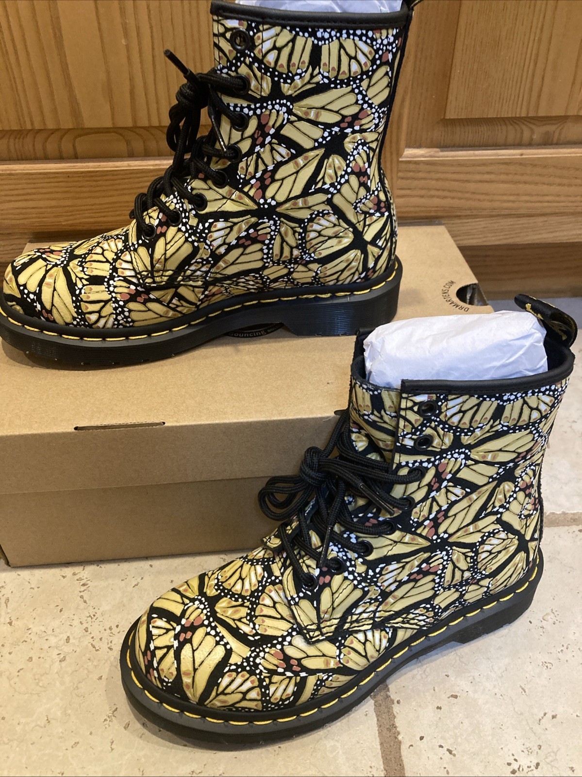 - Dr Martens Size 6 1460 Women's Butterfly Print Suede Boots Yellow