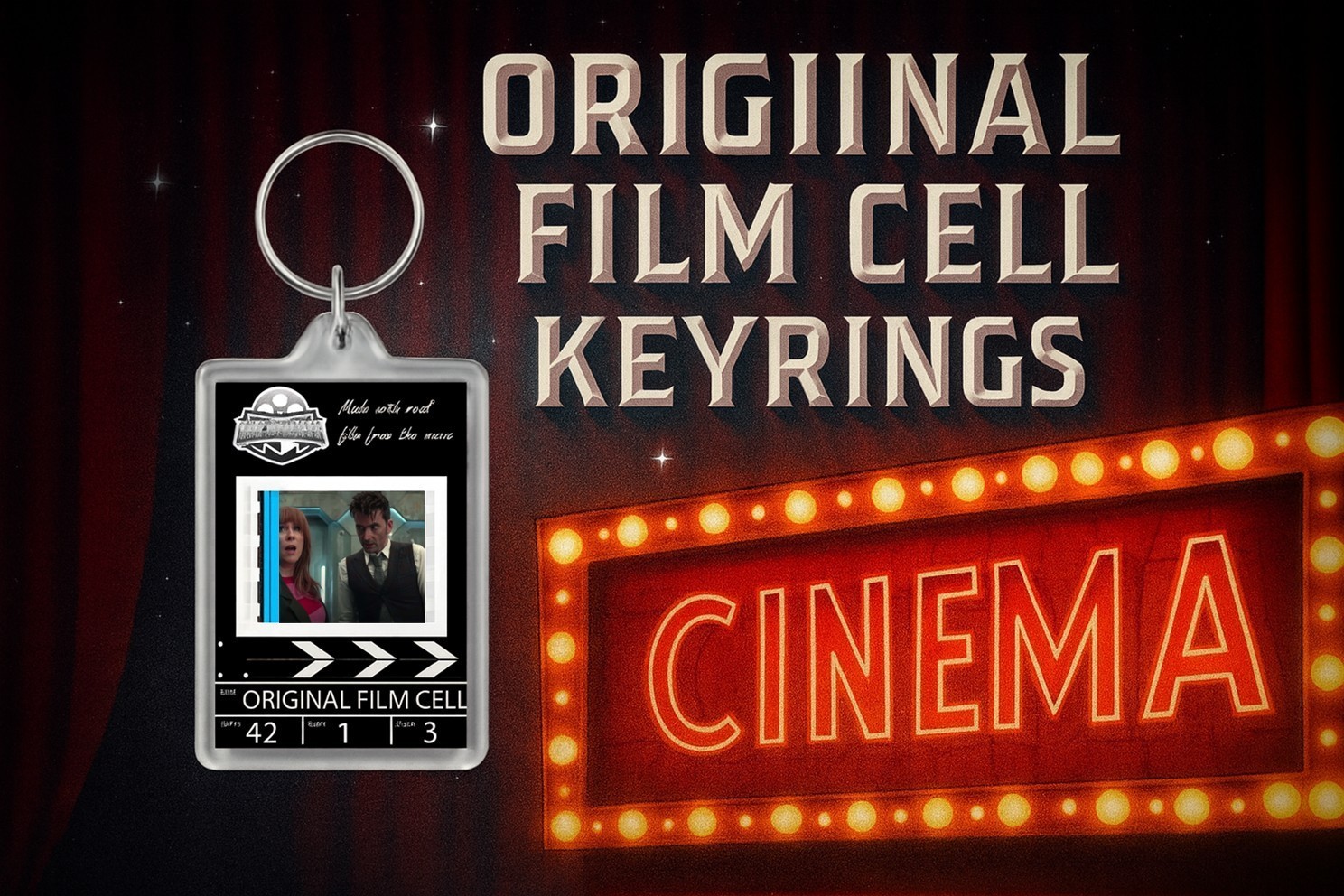 Every film cell is hand-cut directly from genuine reels, making each keyring completely unique. The film strip pictured is an example only ? the scene you receive may vary, ensuring your keyring is truly one-of-a-kind.