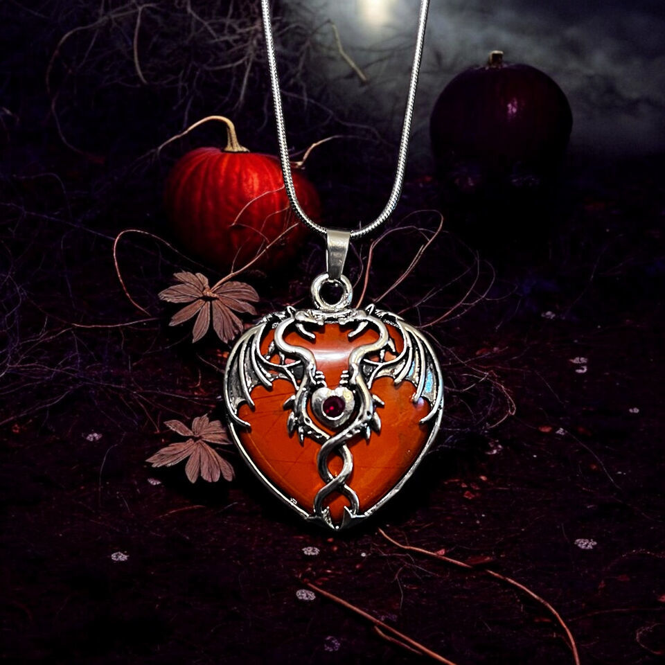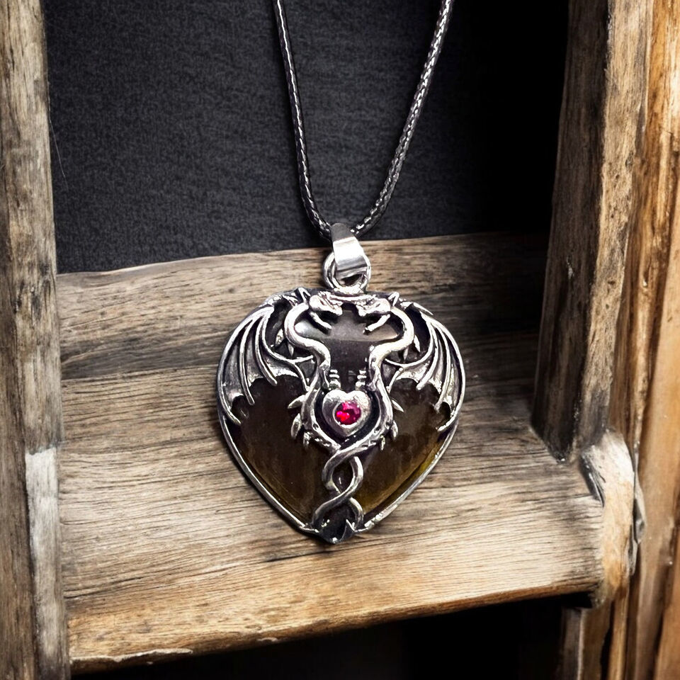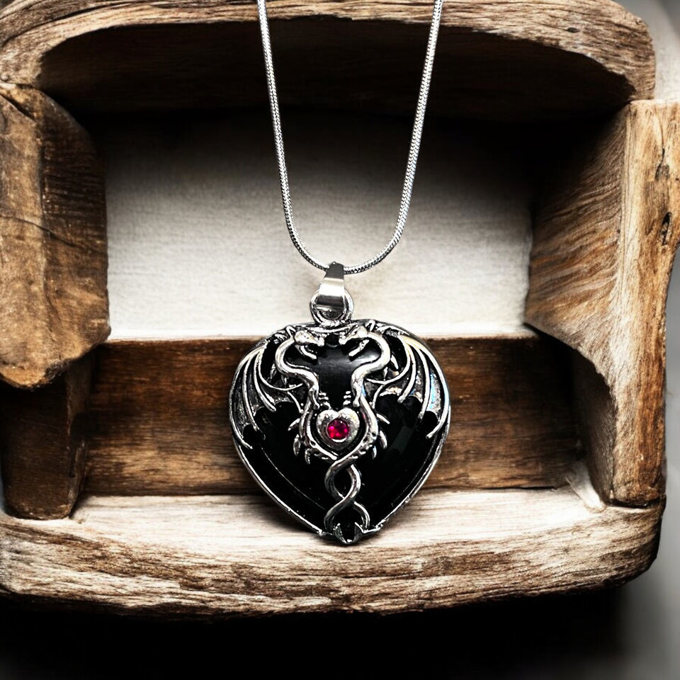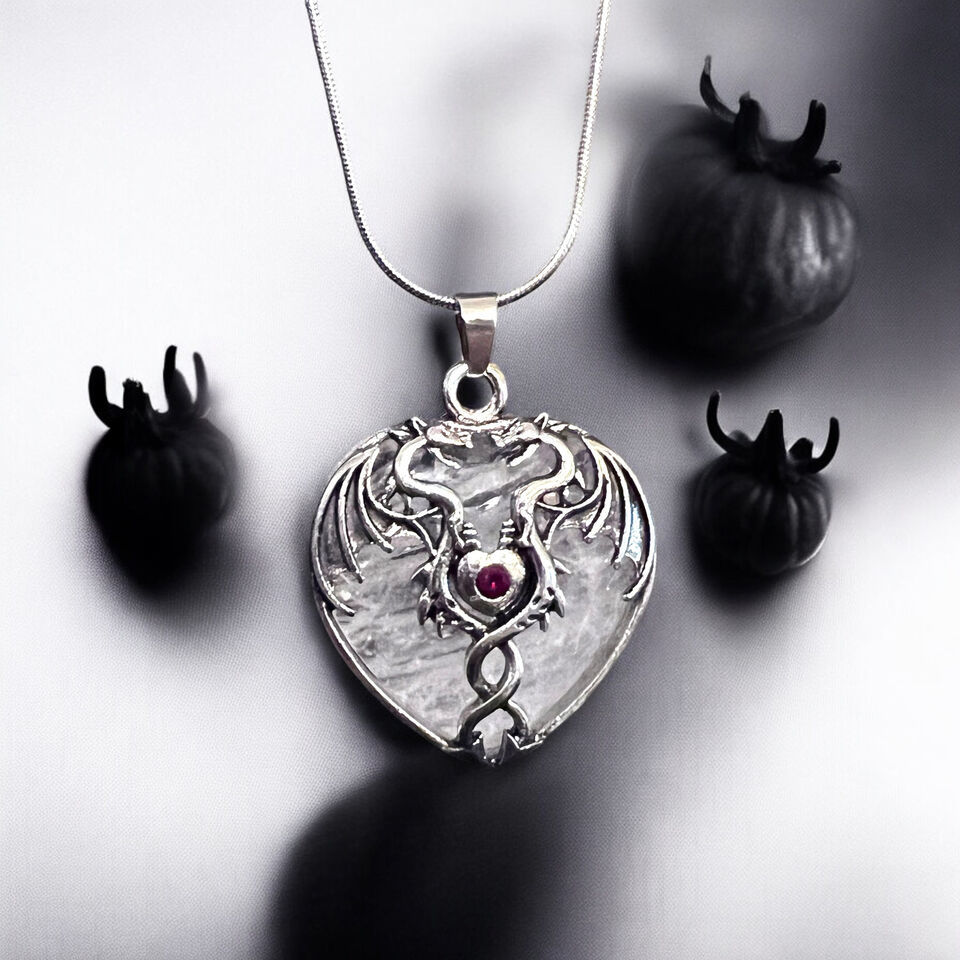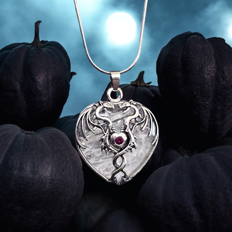 - Dragon Heart Pendant Necklace with Red Gemstone