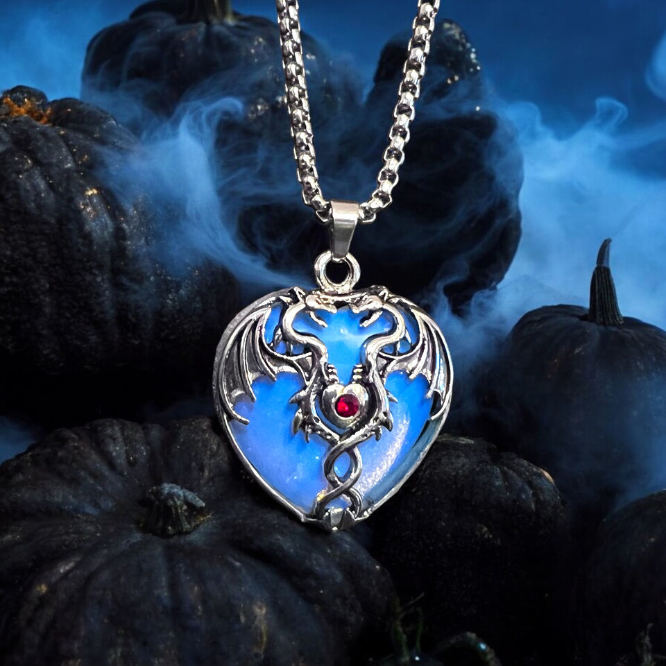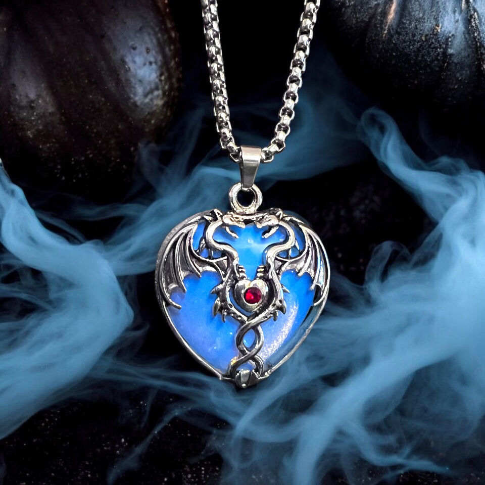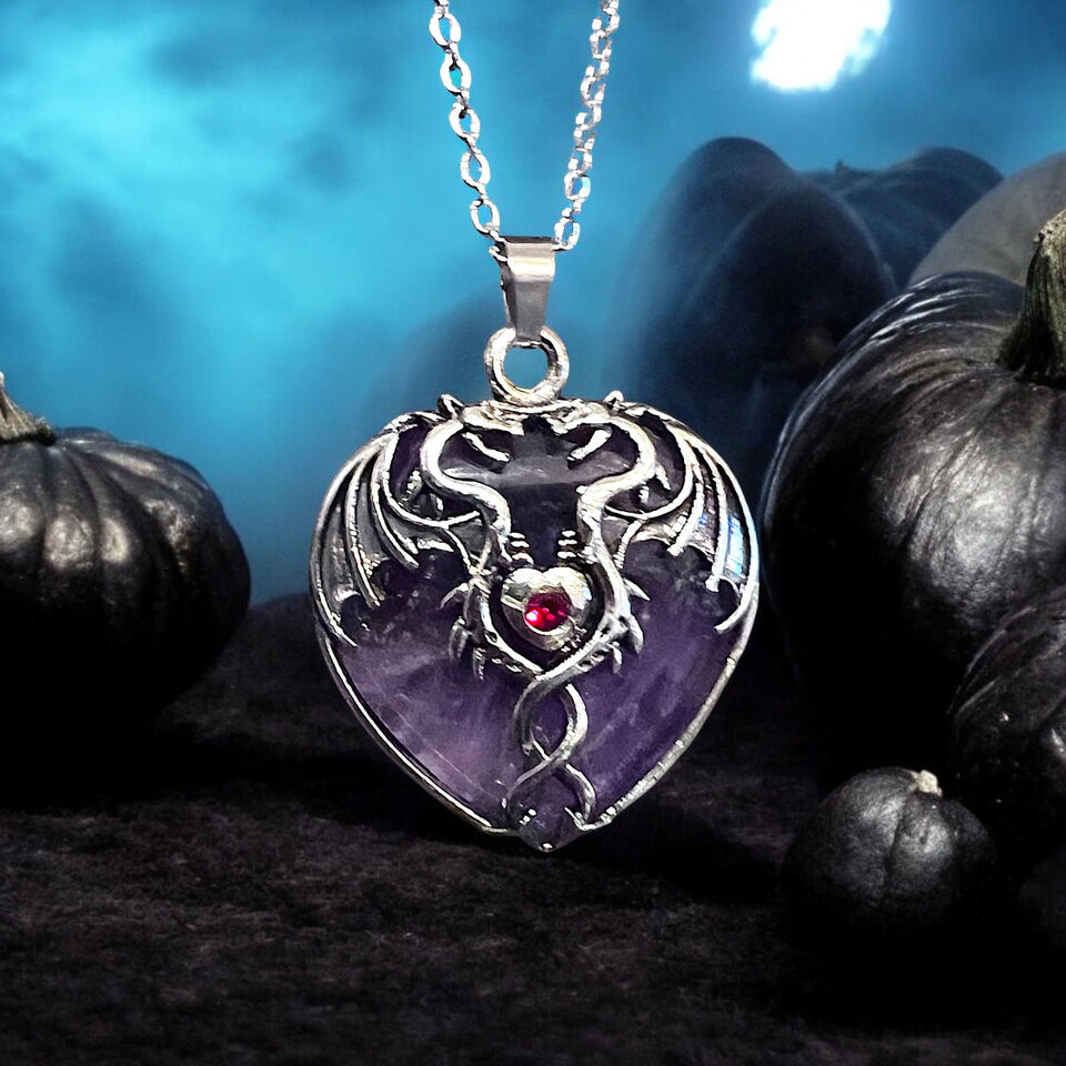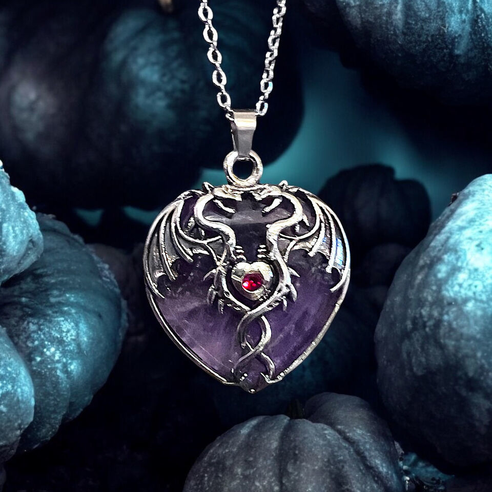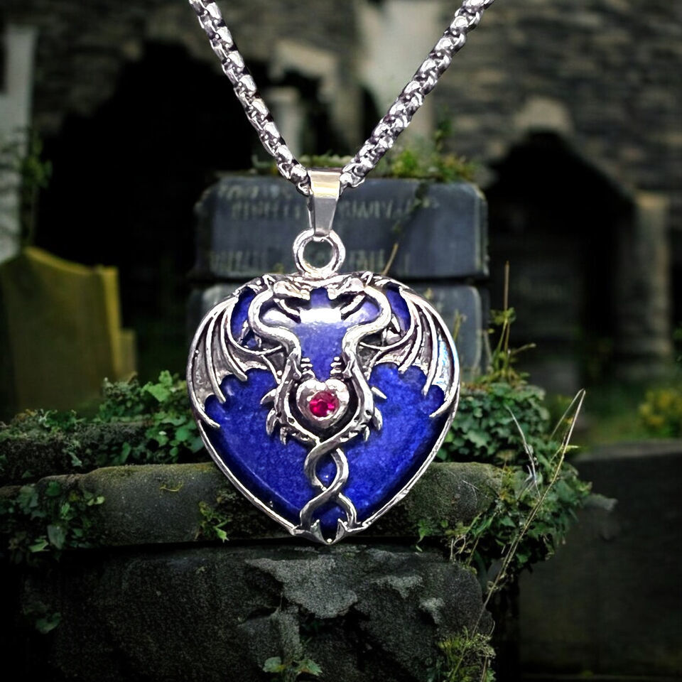 - Dragon Heart Pendant Necklace with Red Gemstone