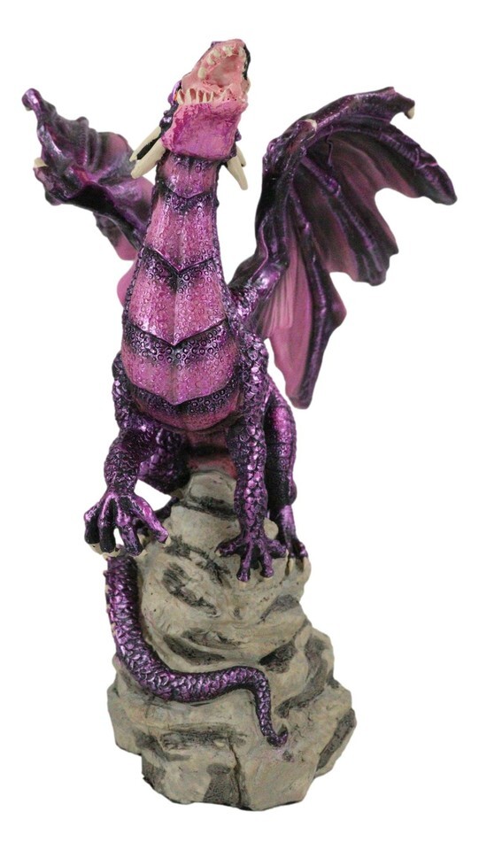 ? A legendary beast of the Ancient world, the Behemoth is a menacing dragon with unique color tone. With its scales thicker than chainmail armor, the magenta dragon is greatly feared and worshipped. This roaring behemoth dragon is a wonderful collectible to display on your shelves, desks or what have you!