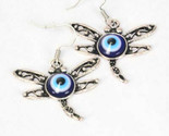 - DRAGONFLY GLASS COBALT BLUE INFINITE EYE EVIL EYE SILVER PLATE DANGLE EARRINGS