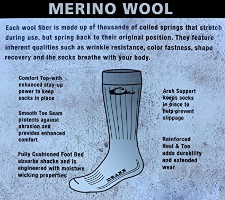 - Drake men's full cushion leg and foot provides optimal padded comfort with the extra benefit of insulated merino wool that provides extra comfort and warmth for hunting, hiking, camping, trekking, trail walking, and outdoor activities