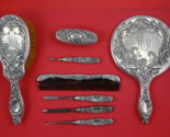 Lovely Dresden by Whiting sterling silver eight-piece vanity/dresser set dated 1895. This set includes: