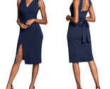 DRESS THE POPULATION Alessia Tie Waist Crepe Dress, Navy, Size Medium, NWT