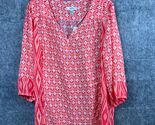 Dressbarn Blouse Top In Bloom V-Neck 3/4 Sleeve Geometric Print Coral 3X New