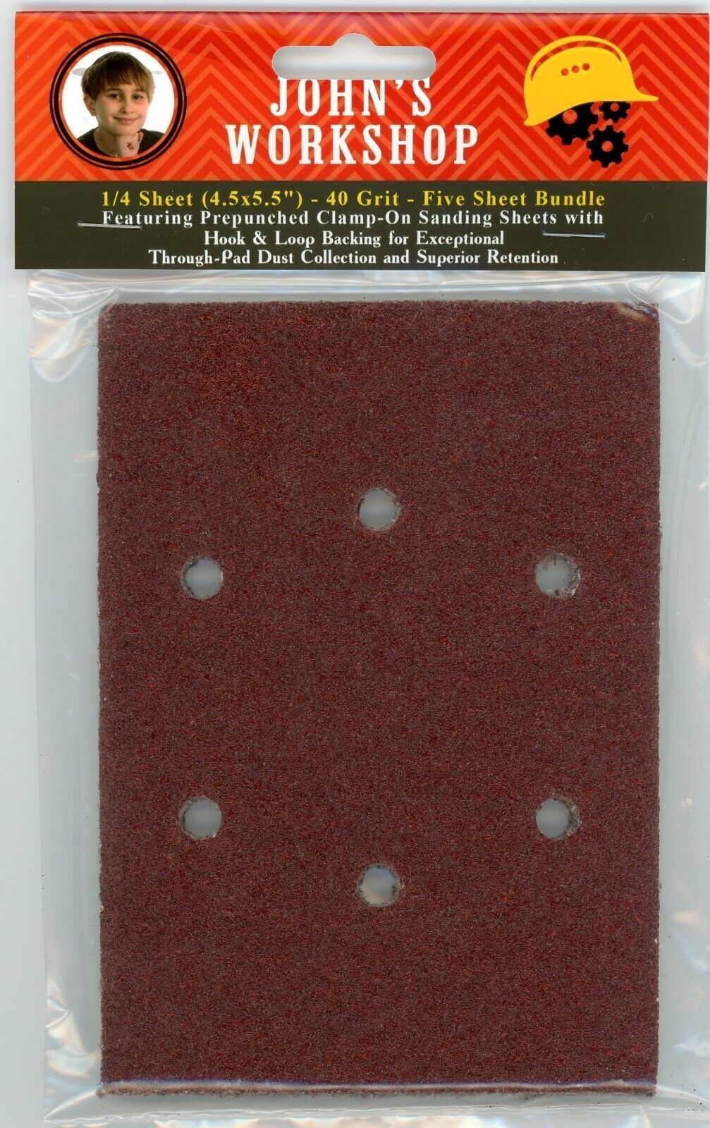 Drill Master 61509 - 1/4 Sheet - 40 Grit - PrePunched - 5 Sandpaper Bundle