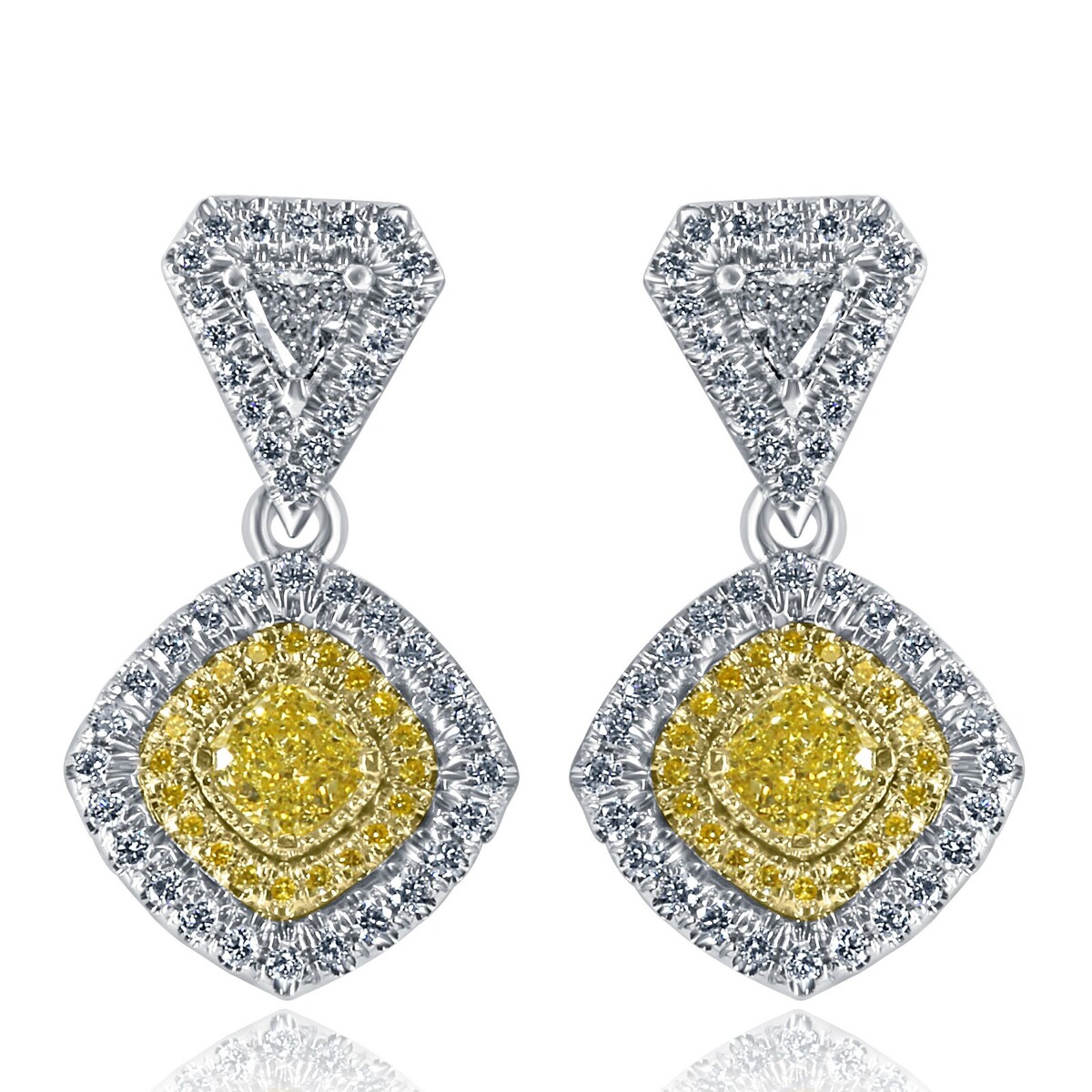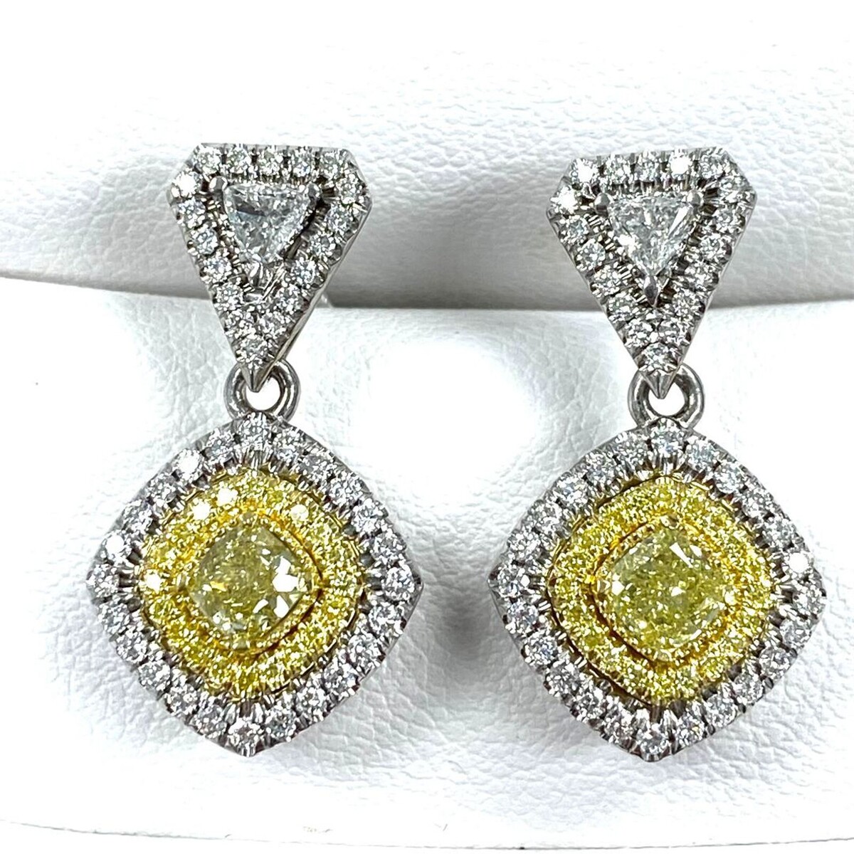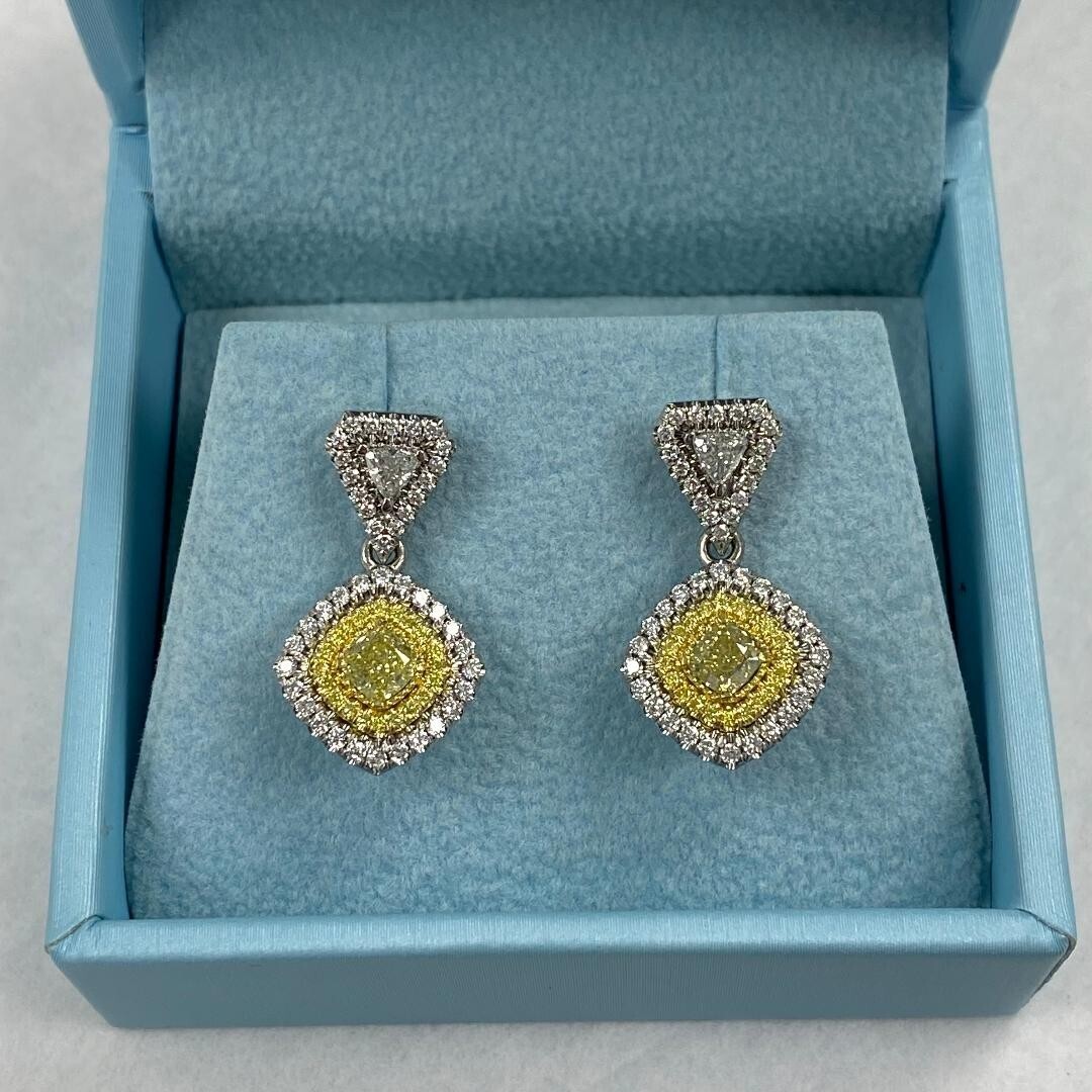 - Drop Dangle Earrings 1.62 TCW Cushion Trillion Yellow Diamond 14k White Gold