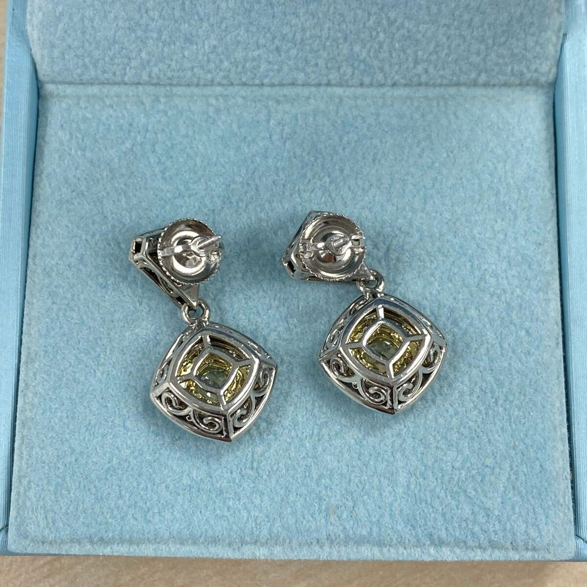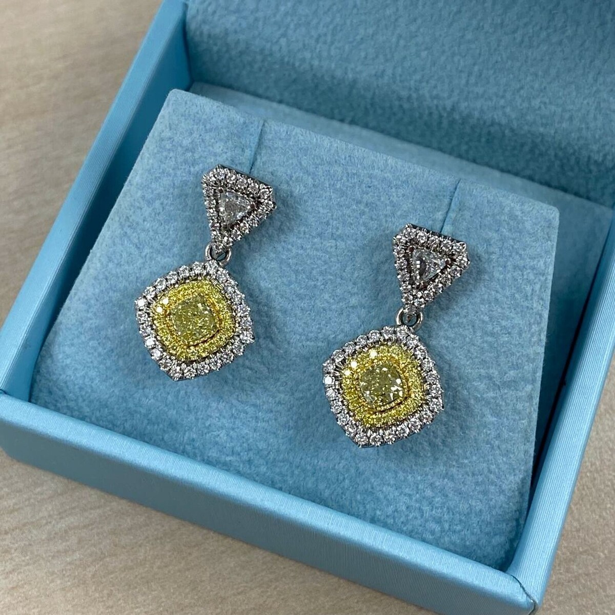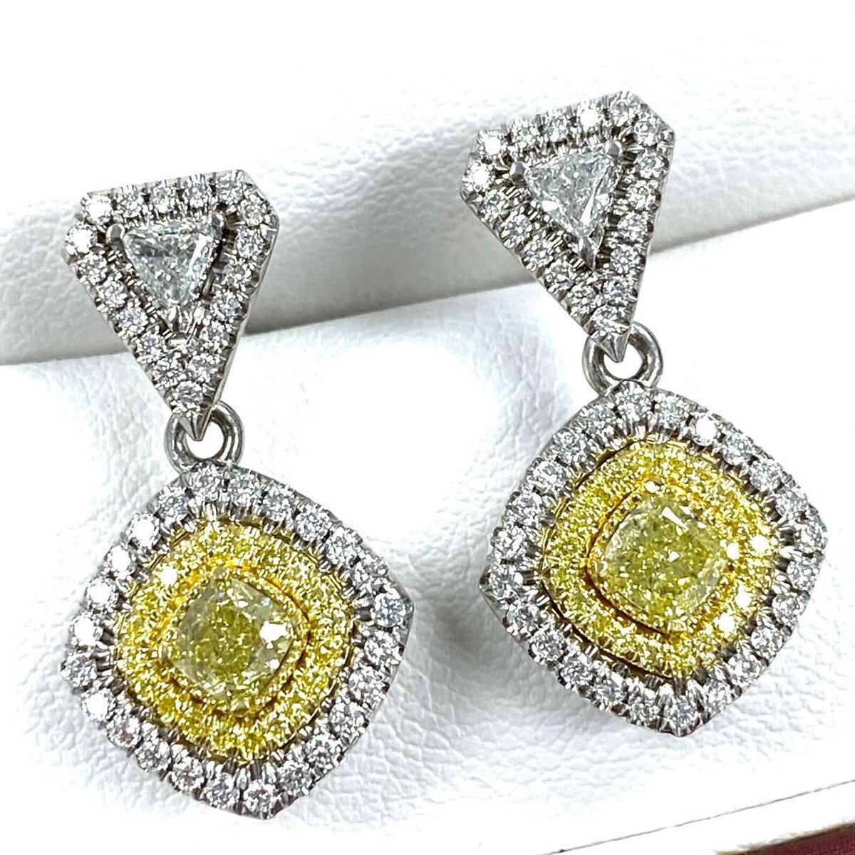 - Drop Dangle Earrings 1.62 TCW Cushion Trillion Yellow Diamond 14k White Gold
