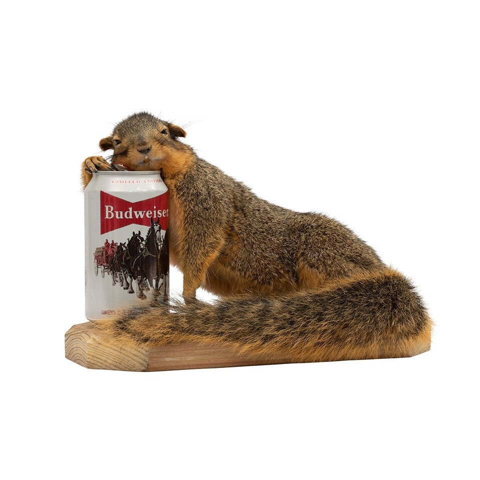 - Drunk Squirrel with Beer Can Taxidermy Animal Statue on Base