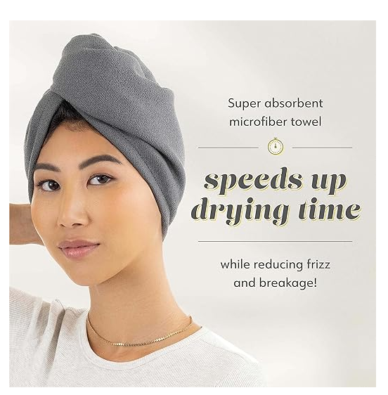 This super absorbent microfiber towel speeds up drying time while reducing frizz and breakage. A must for prepping hair to create the perfect blowout or letting hair air dry!