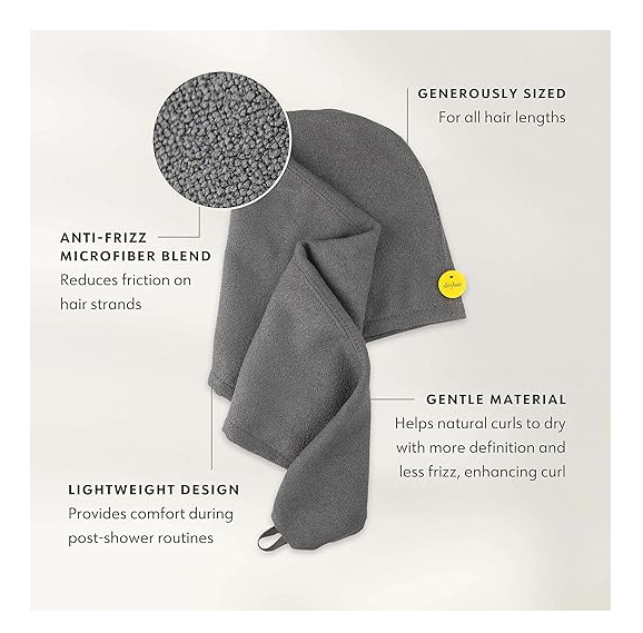 Gentle material helps natural curls to dry with more definition and less frizz, enhancing curl shape.