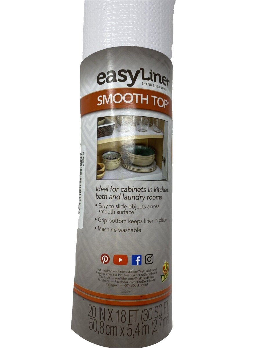 - Duck Easy Liner Smooth Top Value Roll Shelf Liner White 20" x 18' NEW