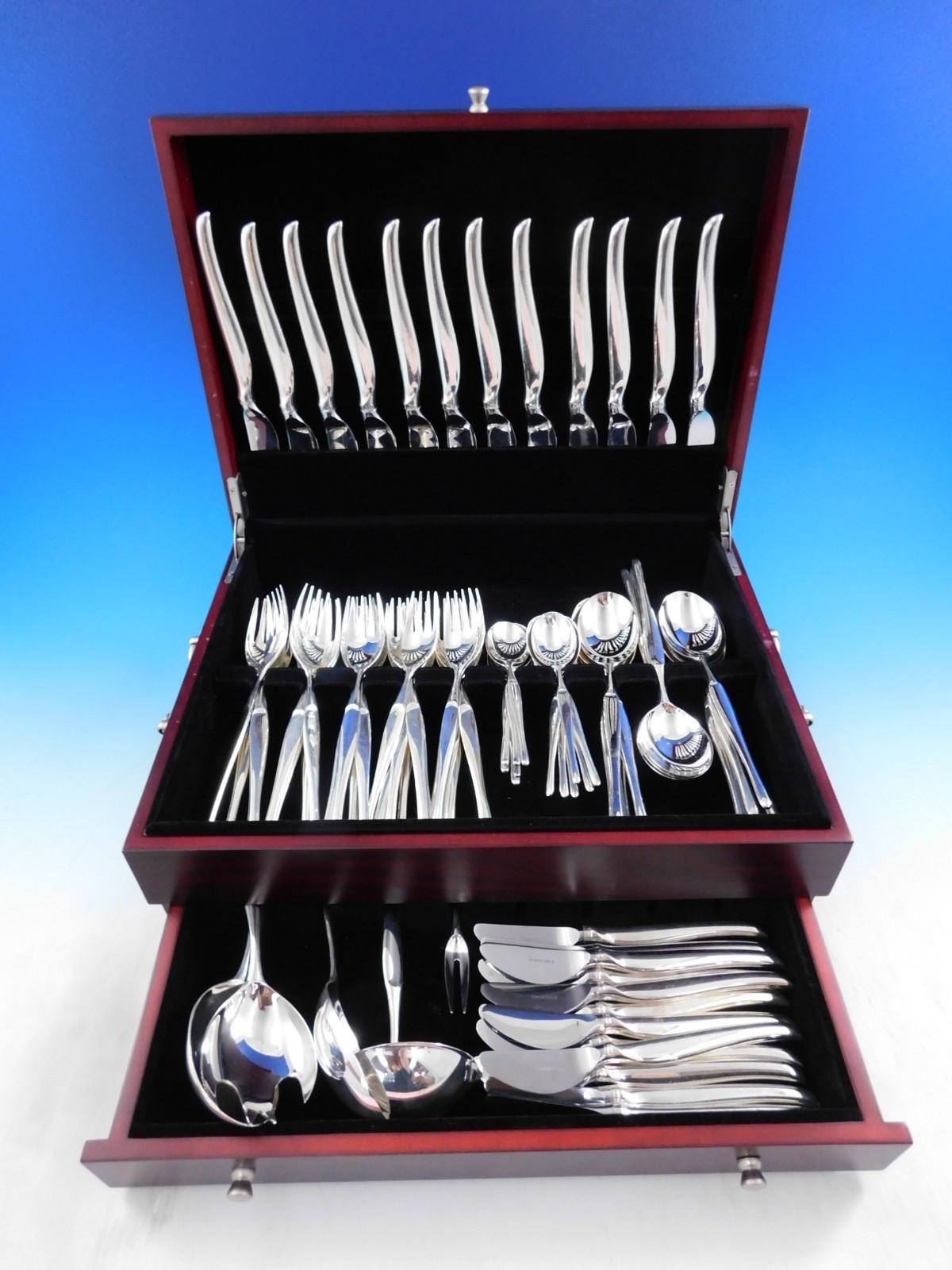 Fabulous Duo aka Silver Wing by Christofle France estate Silverplate Flatware set for 12 with modern design - 77 pieces total. This set includes: