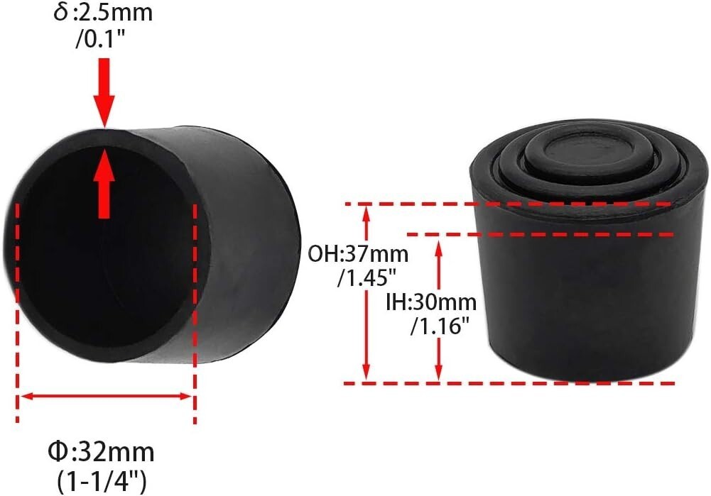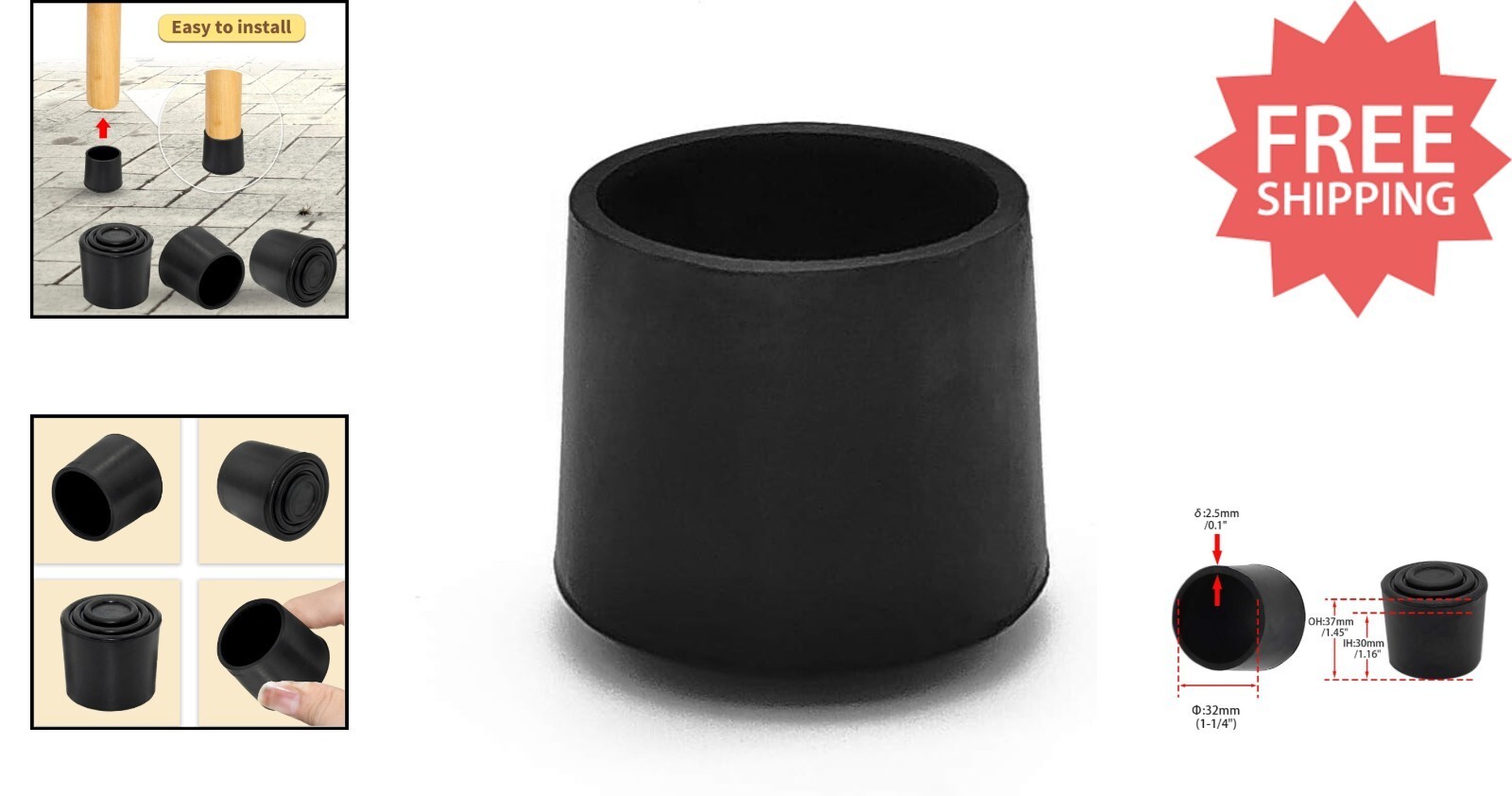 - Durable 1-1/4 Inch Non-Slip Rubber Chair Leg Caps - 16 PCS for Floor Safety