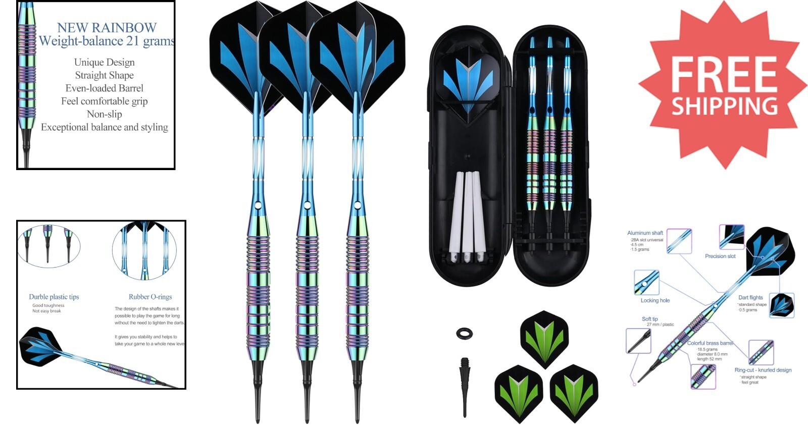- Durable 18g/21g Darts Set with 50 Tips - Rainbow Design for Electronic Boards