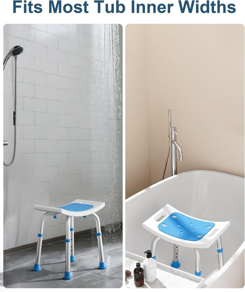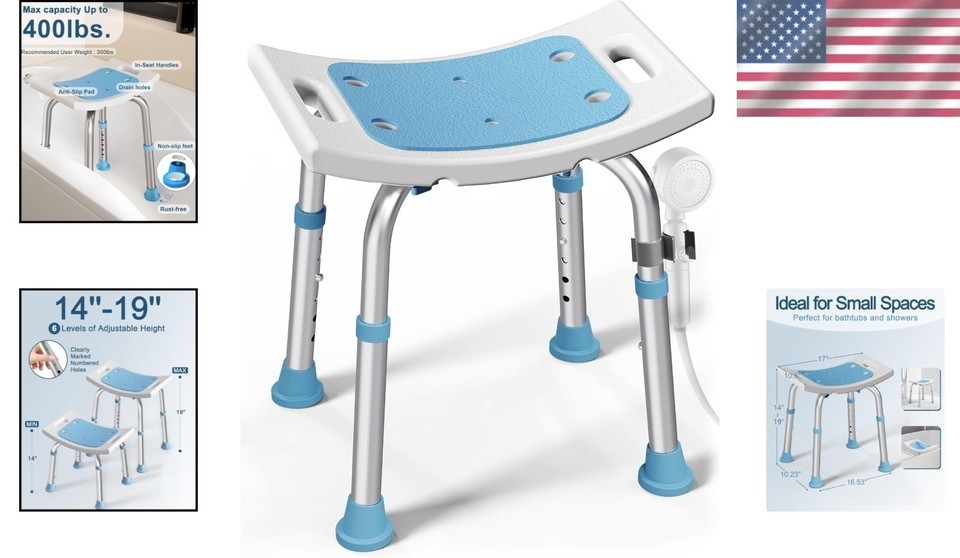 - Durable 400 lbs Shower Stool, Adjustable & Lightweight with Anti-Slip Cushions