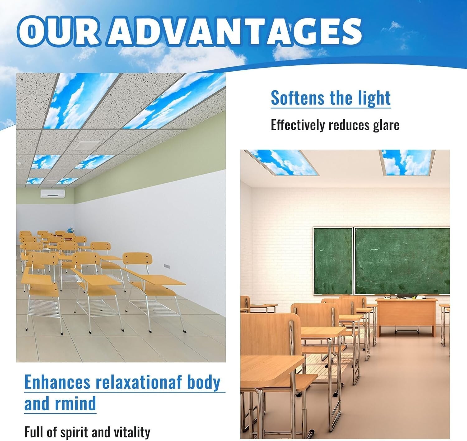 - Durable 4x2 Feet Light Covers - Elegant Cloud Design for Ceiling Fixtures