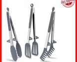 - Durable Grey Silicone Tongs Set with Stainless Steel - Heat Resistant & Safe