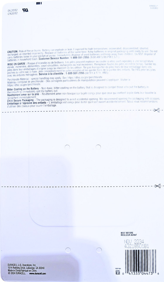 - Duracell 2032 Lithium Coin Batteries 12 Count Child Secure EXP 11/2034