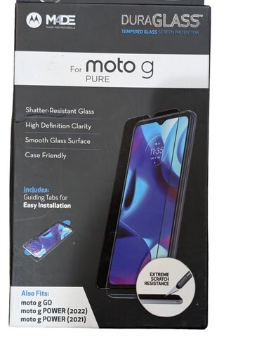 Brand new duraglass tempered glass screen protector. Made for Moto g pure, Moto g go, Moto g power 2021, Moto g power 2022.