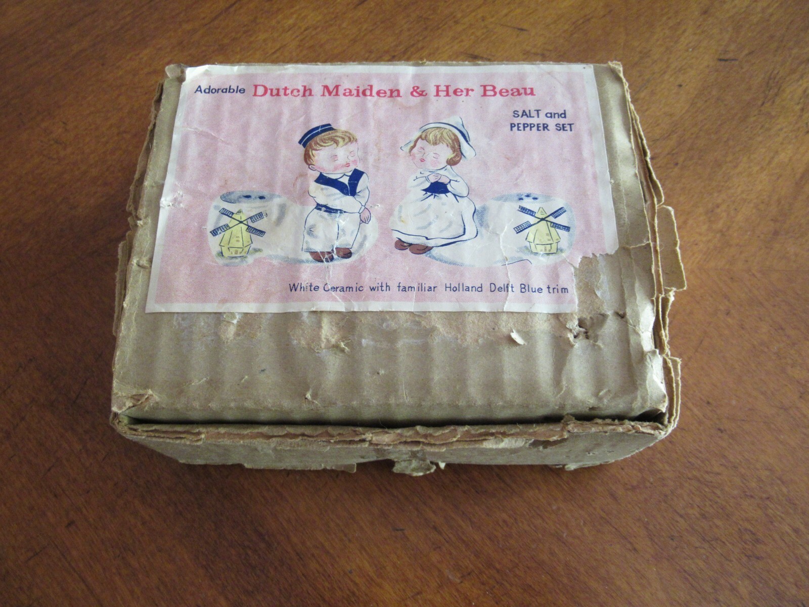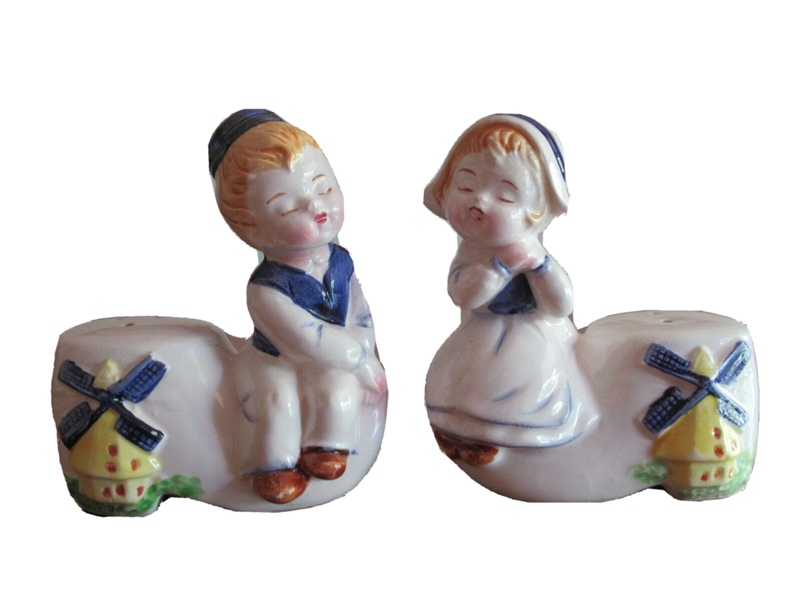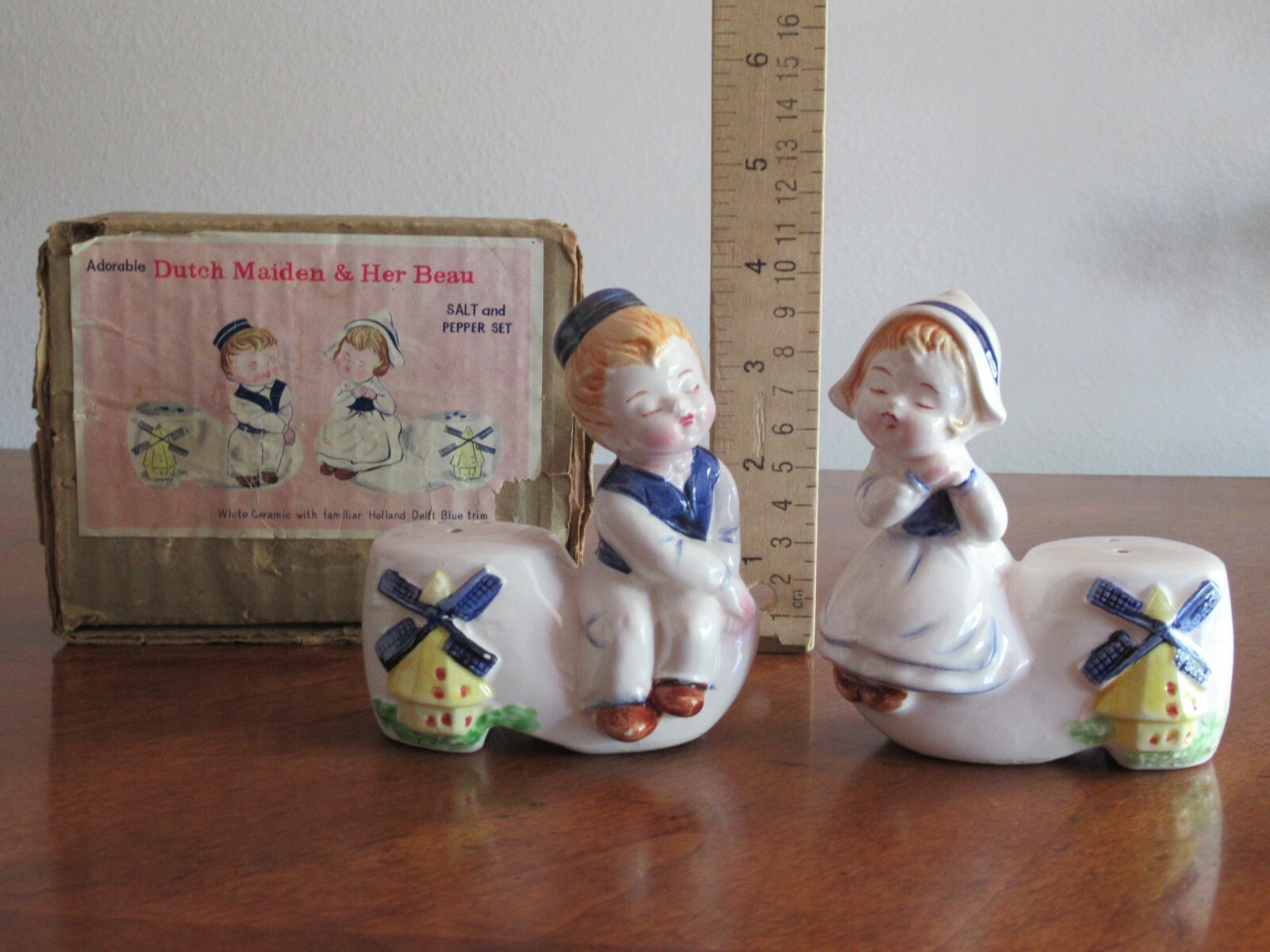 - Dutch Maiden & Her Beau Windmill Girl Boy Salt Pepper Shaker Set 50/60's w/ Box
