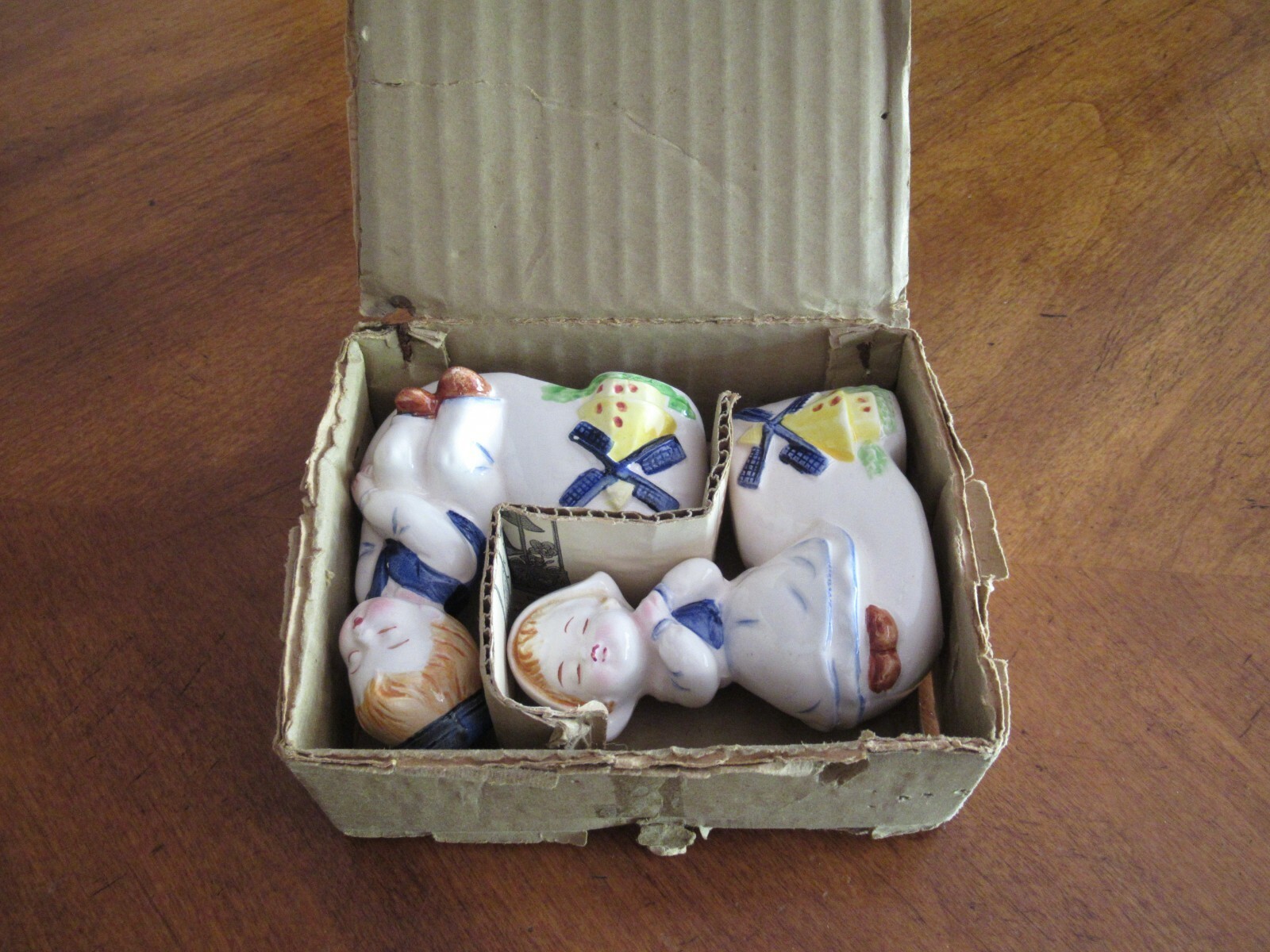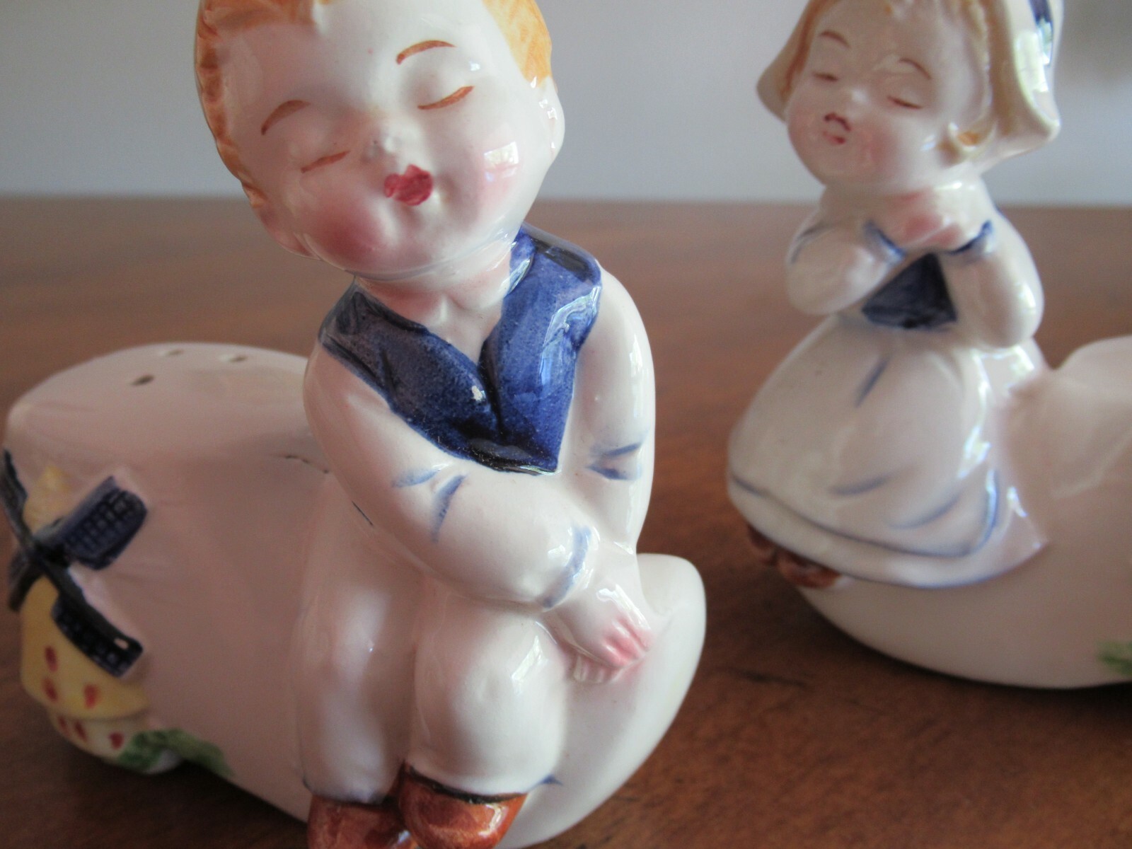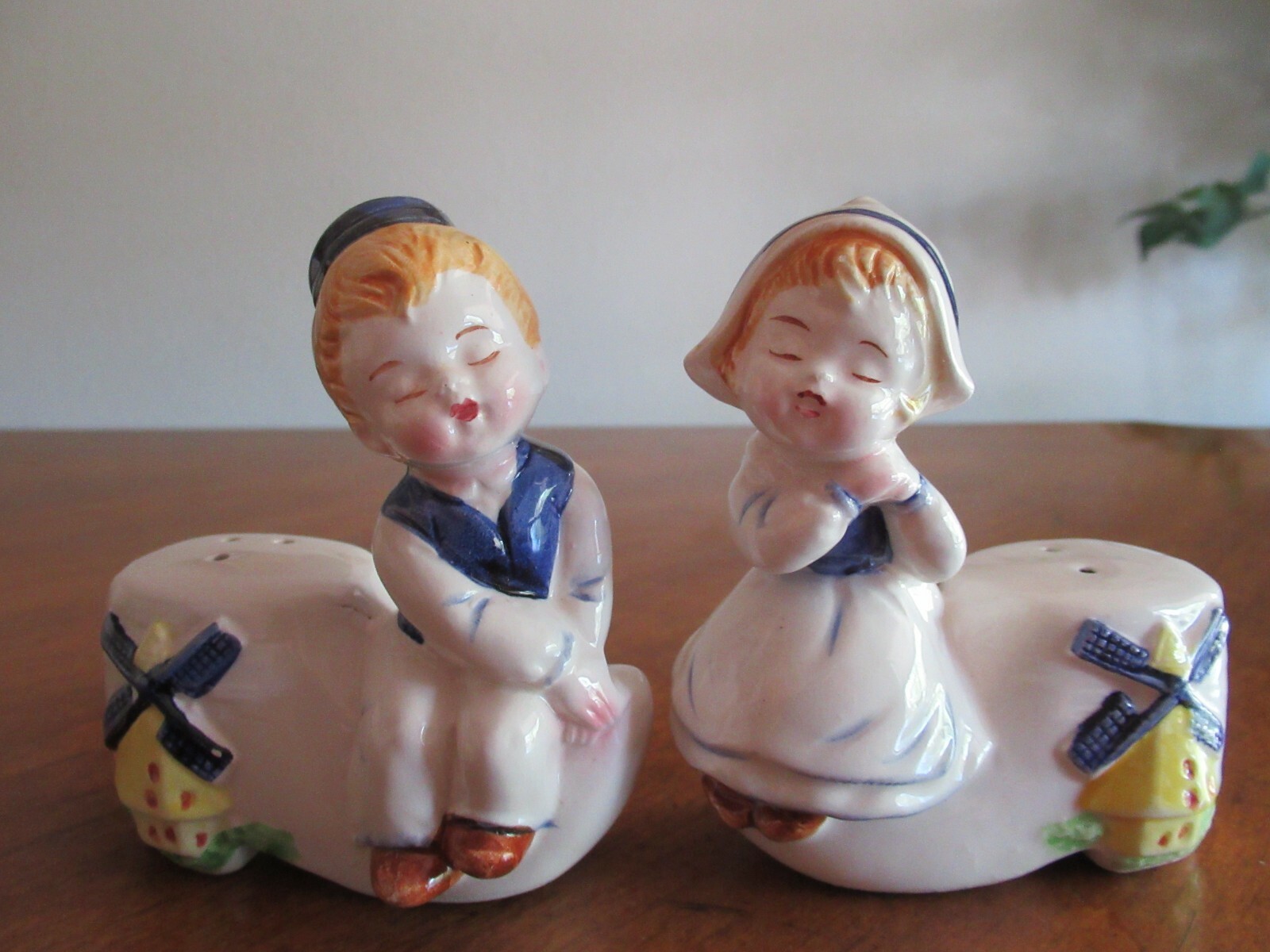 - Dutch Maiden & Her Beau Windmill Girl Boy Salt Pepper Shaker Set 50/60's w/ Box