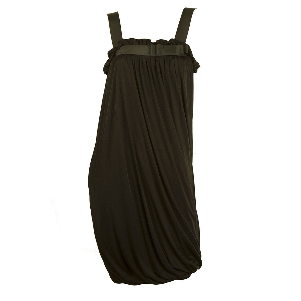 Duyan Black Sleeveless Draped Bubble Hem Wide Straps Bow Mini Dress size 44