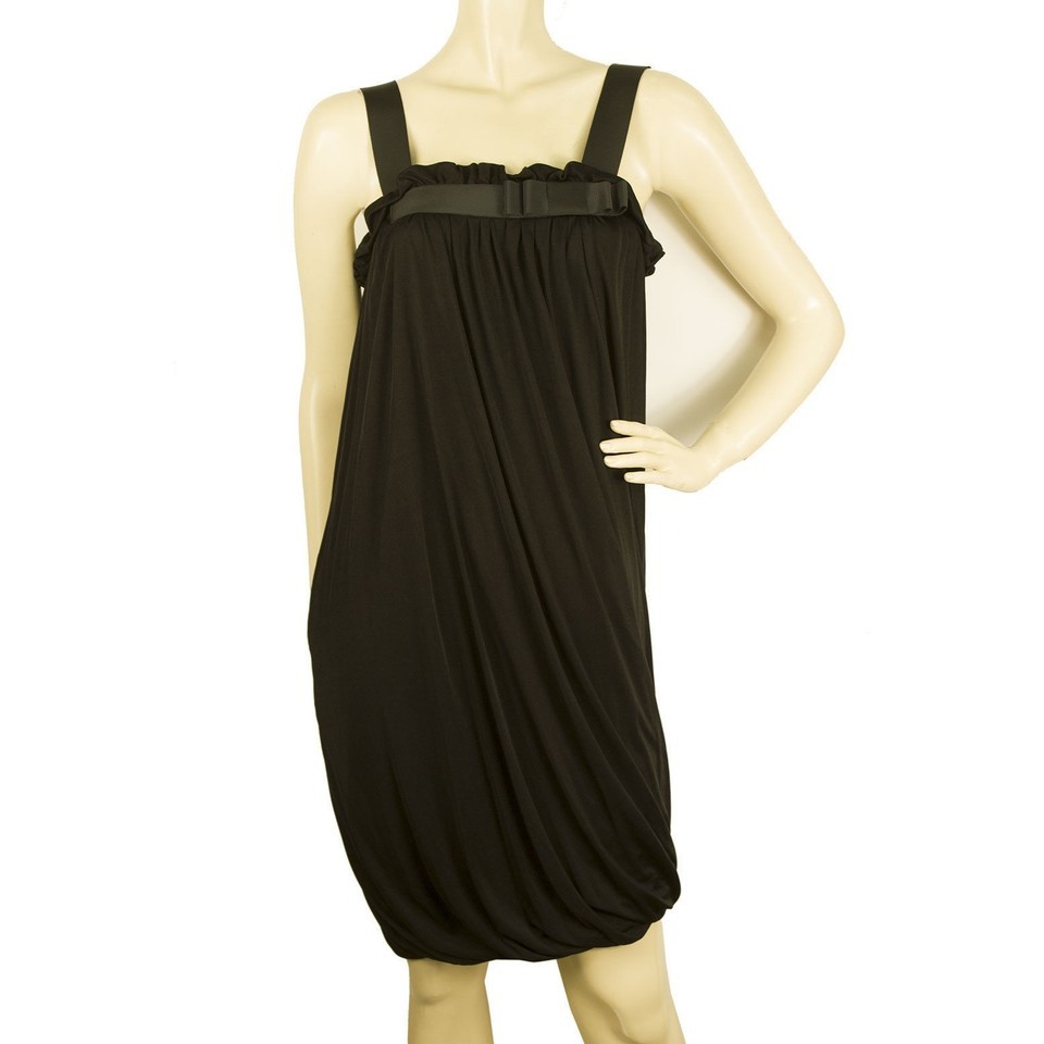 - Duyan Black Sleeveless Draped Bubble Hem Wide Straps Bow Mini Dress size 44