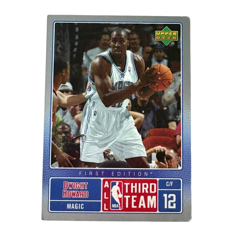 Add an iconic piece of NBA history to your collection with this Dwight Howard 2004-05 Upper Deck First Edition #12 basketball card. Featuring the #1 overall pick of the 2004 NBA Draft during his rookie season, this card is a must-have for collectors and fans of one of the league?s top defensive players of the 2000s and 2010s.