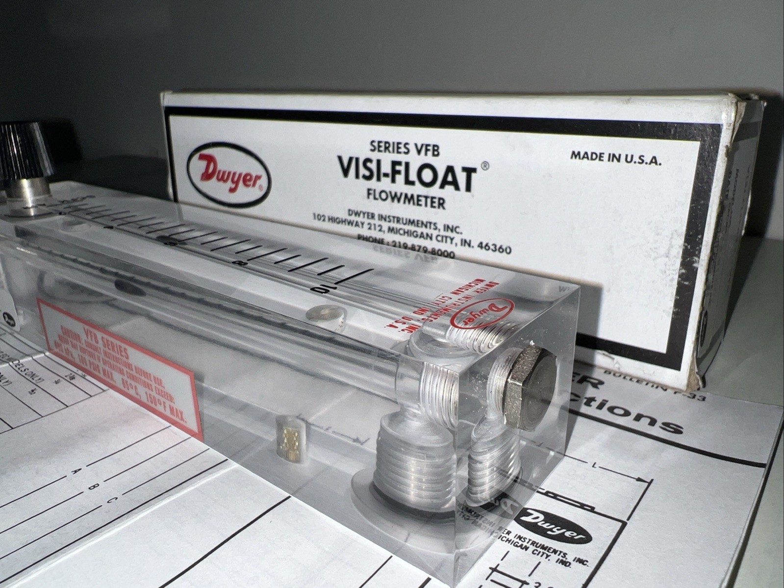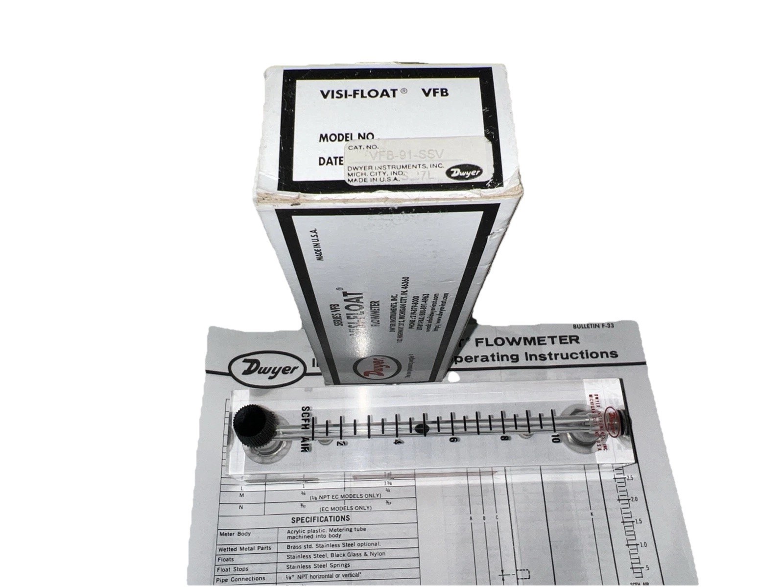 For your consideration is a Dwyer VFB-91-SSV Visi-Float Flowmeter ~New