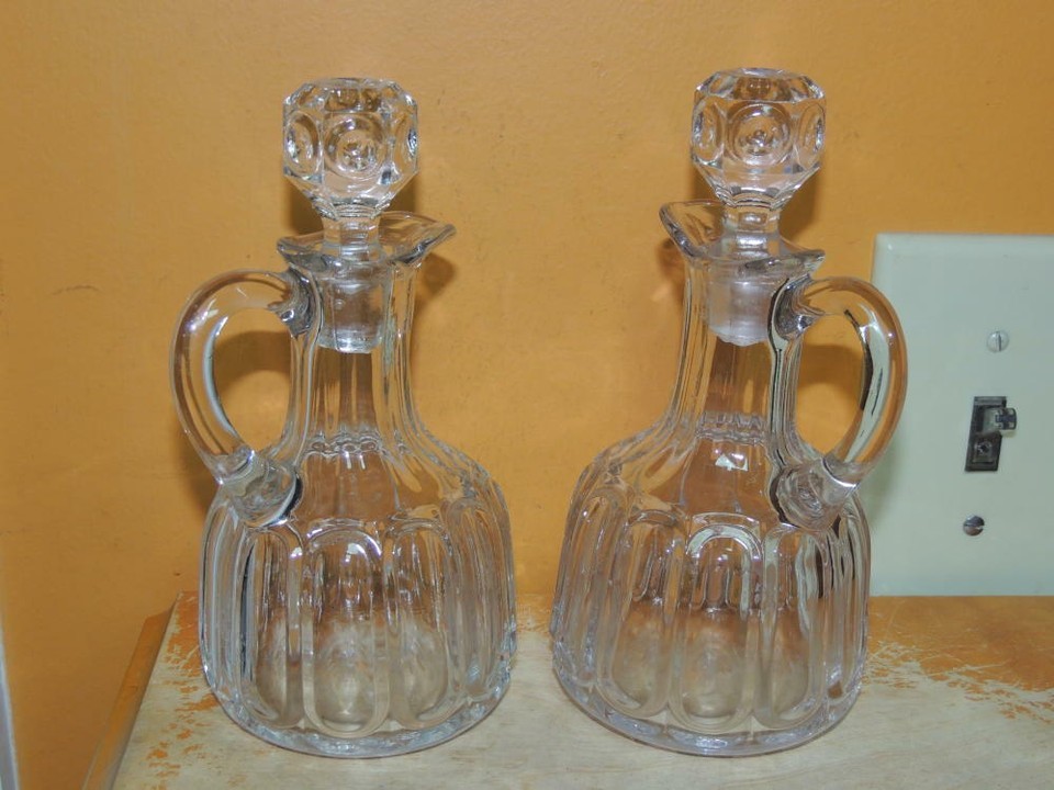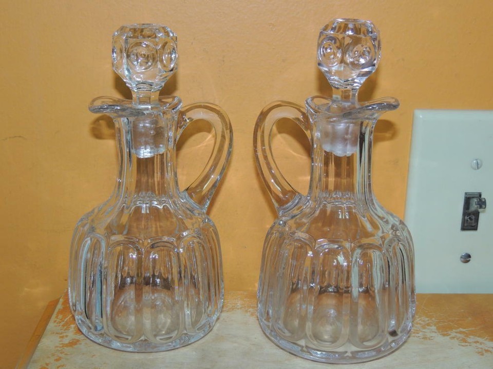 - EAPG Model Flint Glass Cruets 6.5" R.N pattern antique panel bullseye hand blown