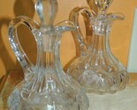 TWO GLASS CRUET - BEING HAND MADE THEY ARE NOT IDENTICALLY SIZED. PLEASE EXAMINE PHOTOS CLOSELY