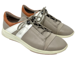 ECCO Women's Soft Lace Up Leather Sneaker Taupe with Orange Sz 7