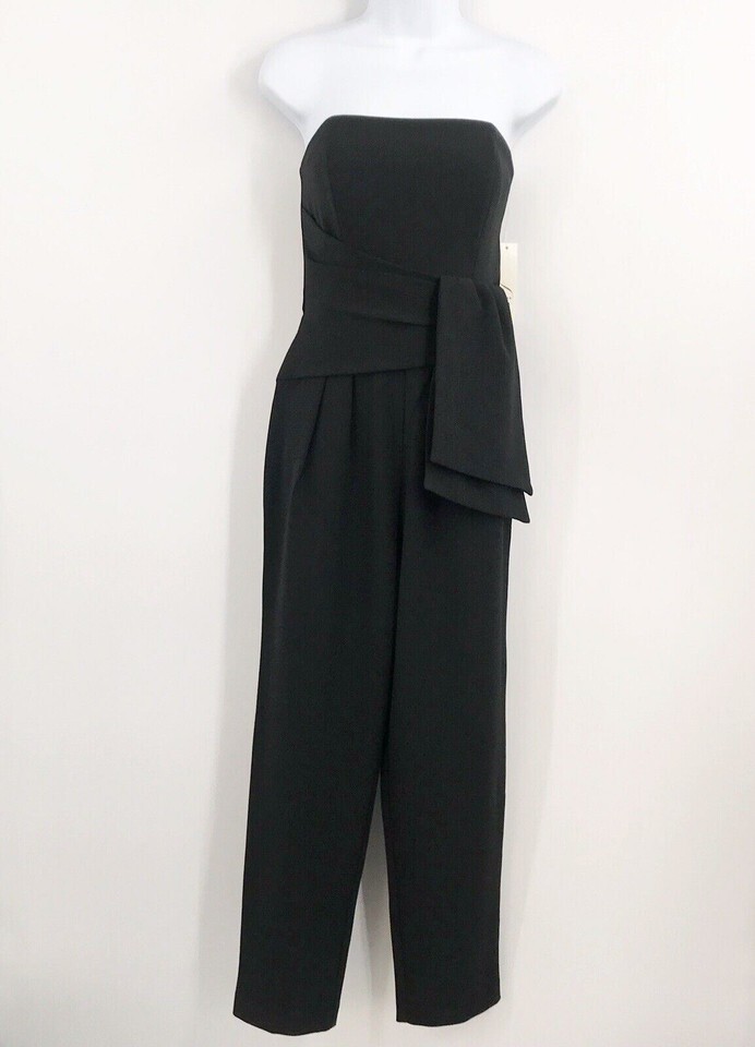 ELIZA J Off-The-Shoulder Crepe Black Jumpsuit - Size 6