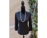 - ELLE Sweater Women's Medium Black Pearl Embellished 34 Sleeve Pullover Knit