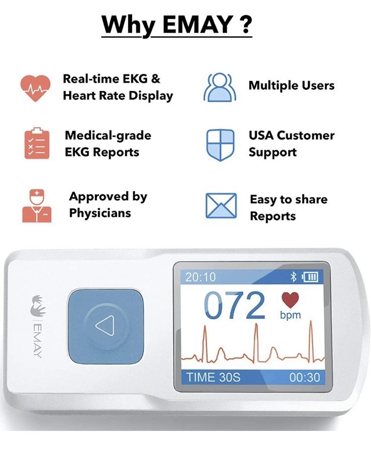 - EMAY Wireless Portable EKG Monitor with Live EKG Waveform & Intuitive App (Blue)