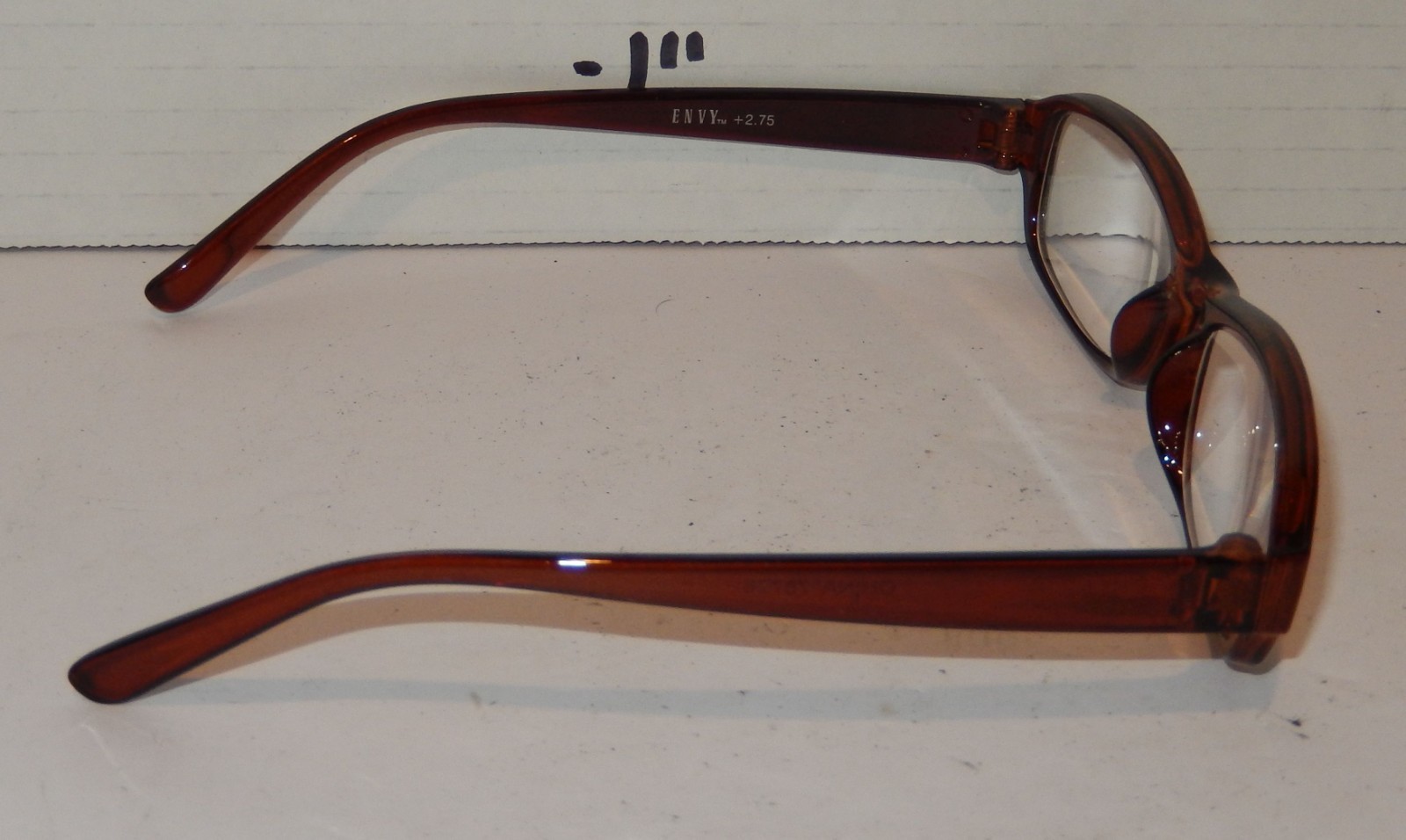 Up for sale is an ENVY Brown Rectangular Reading Glasses +2.75 Strength Plastic Frame Readers.